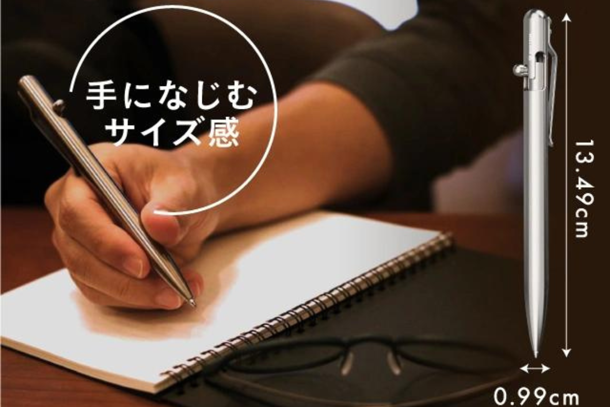 しなやかな書き味に使い心地。こんなボールペンにやっと出会えた! 高級なチタン素材100%のボールペンなのに、持ちやすいサイズ&重さ! ボルトアクション方式。一生モノ!継ぎ目が見えない精密な作り!