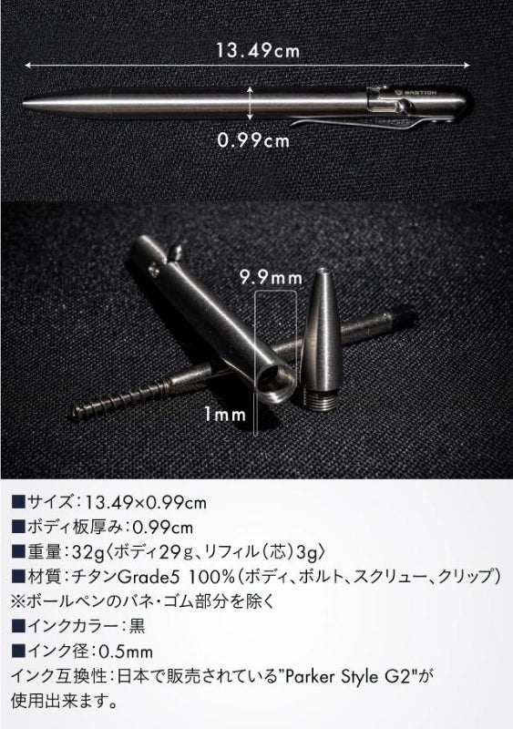 【新商品】軽量チタンボールペン、ボルトアクション方式、Bastion Slim Pen。 10月31日(火)machi-yaにて先行予約販売開始しました!チタン100%ボールペンから貰える満足感