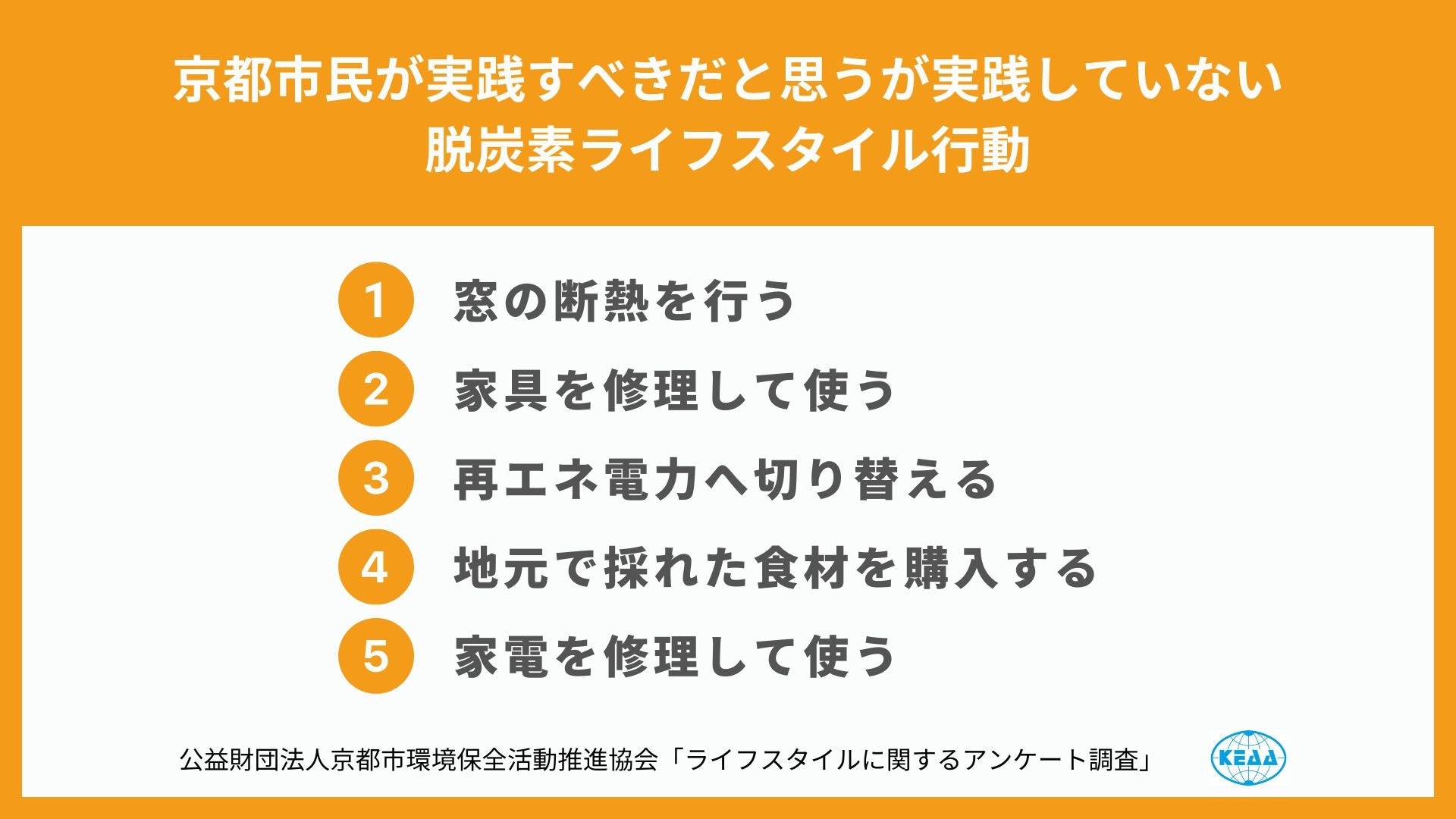 【調査レポート】京都市民が実践すべきだと思うが実践していない脱炭素ライフスタイル行動が明らかに