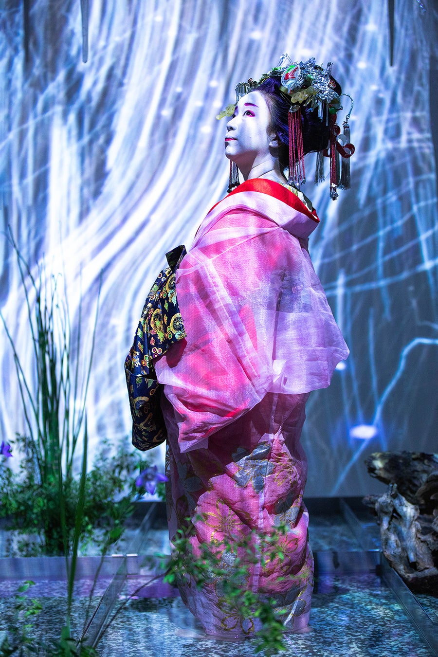 京都・島原太夫とプロジェクションマッピングの融合舞台「夢幻ノ刻」公演