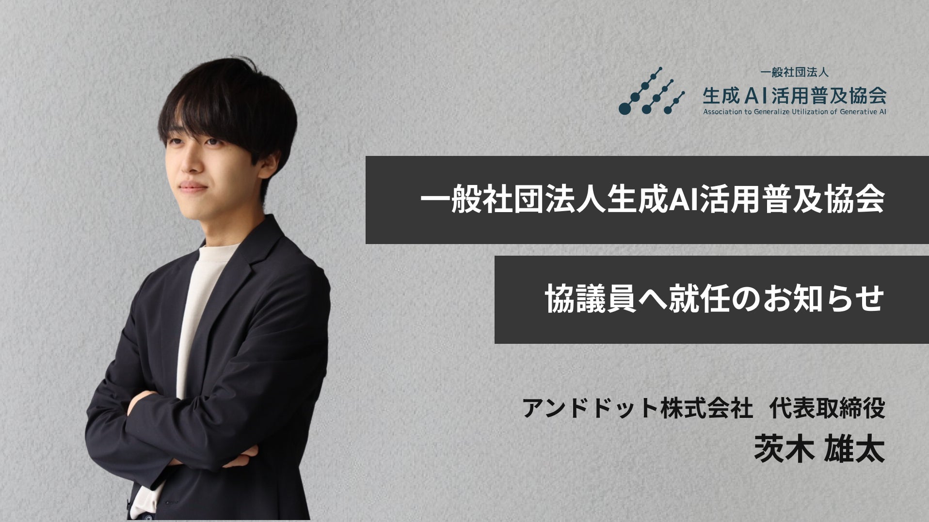 生成AIの普及のために、企業単位ではなく社会全体での底上げが必要当社代表 茨木が、生成AI活用普及協会「GUGA」の協議員に就任