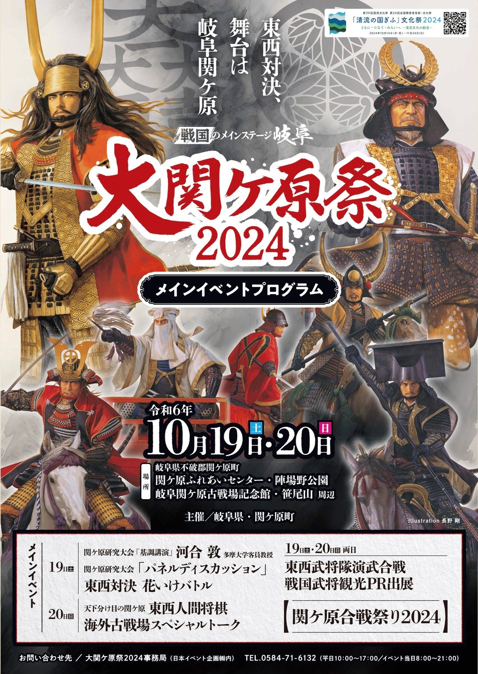 県及び関ケ原町では、9月7日(土曜日)から 10月20日(日曜日)までの期間を「大関ケ原祭 2024」と位置づけ、関ケ原古戦場の魅力を発信する各種イベントを開催します。(岐阜県報道発表資料より引用。)
