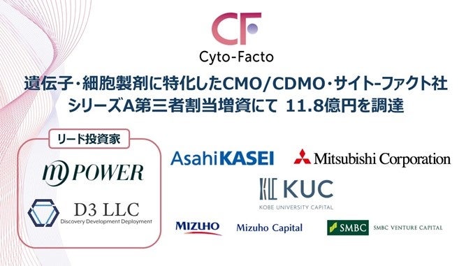 公益財団法人である神戸医療産業都市推進機構からスタートアップとしてスピンアウトし1年が経過しました。川真田博士が率いるサイト-ファクトはその実績・技術力では一日の長として世界に知られた存在でしたが、自走・成長する民間企業としてはまさに産まれたてほやほやのシードステージスタートアップとしてのスタートでした。弊社D3はスピンアウトから伴走させていただいておりますが、この1年間、経営・組織・財務・営業等の立ち上げに取り組んでこられてきました。公的機関からのスタートアップ・スピンアウトは国内外でも稀有なチャレンジです。まさに前例なき変革に挑戦した1年でしたが、サイト-ファクトの役職員は乗り越えてきました。「世界の最先端の遺伝子・細胞治療を日本の患者にも届ける、そして日本からも世界に貢献するような医療技術を開発できるインフラとしての責務を果たす」という志があってのことでしょう。その過程も高く評価頂き、世界的に活躍するVCであるMPower Partners様をリード投資家してお迎えすることができました。加えて、多くの投資家様からもご出資意向も賜り、事業会社として旭化成様・三菱商事様、金融機関としてSMBC VC様・みずほキャピタル様、大学VCとして神戸大キャピタル様にもご参画賜り、当初予定資金調達額を大幅に上回るシリーズA調達となりました。今回資金調達を通じ、サイト-ファクトは、サステナブルに成長する民間企業として、日本のみならずアジアをカバーする遺伝子・細胞治療CDMOとしての営業体制を強化していきます。また、グローバルメガファーマ品質基準の上市細胞製造経験に基づいた細胞製造DXプログラムの完全実装も推進します。さらに、引き続き、遺伝子・細胞治療開発製造のグローバル・リーダー*として、最先端の細胞製造技術の研究開発も進めてまいります。(*直近、本年5月のISCT(国際遺伝子・細胞治療学会)において川真田博士が講演を行います:iPSC Signature Series - ISCT 2024 (isctglobal.org) )