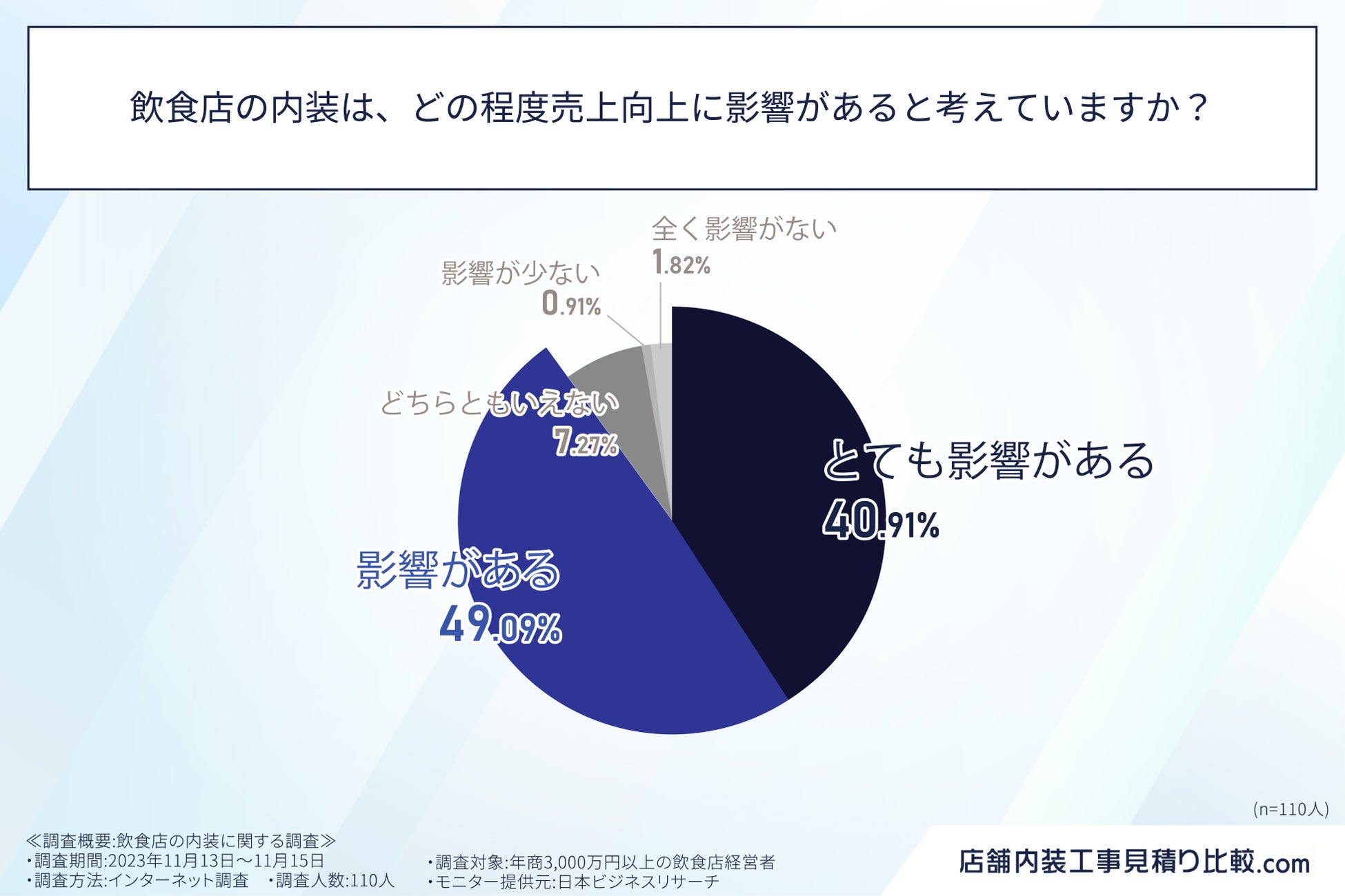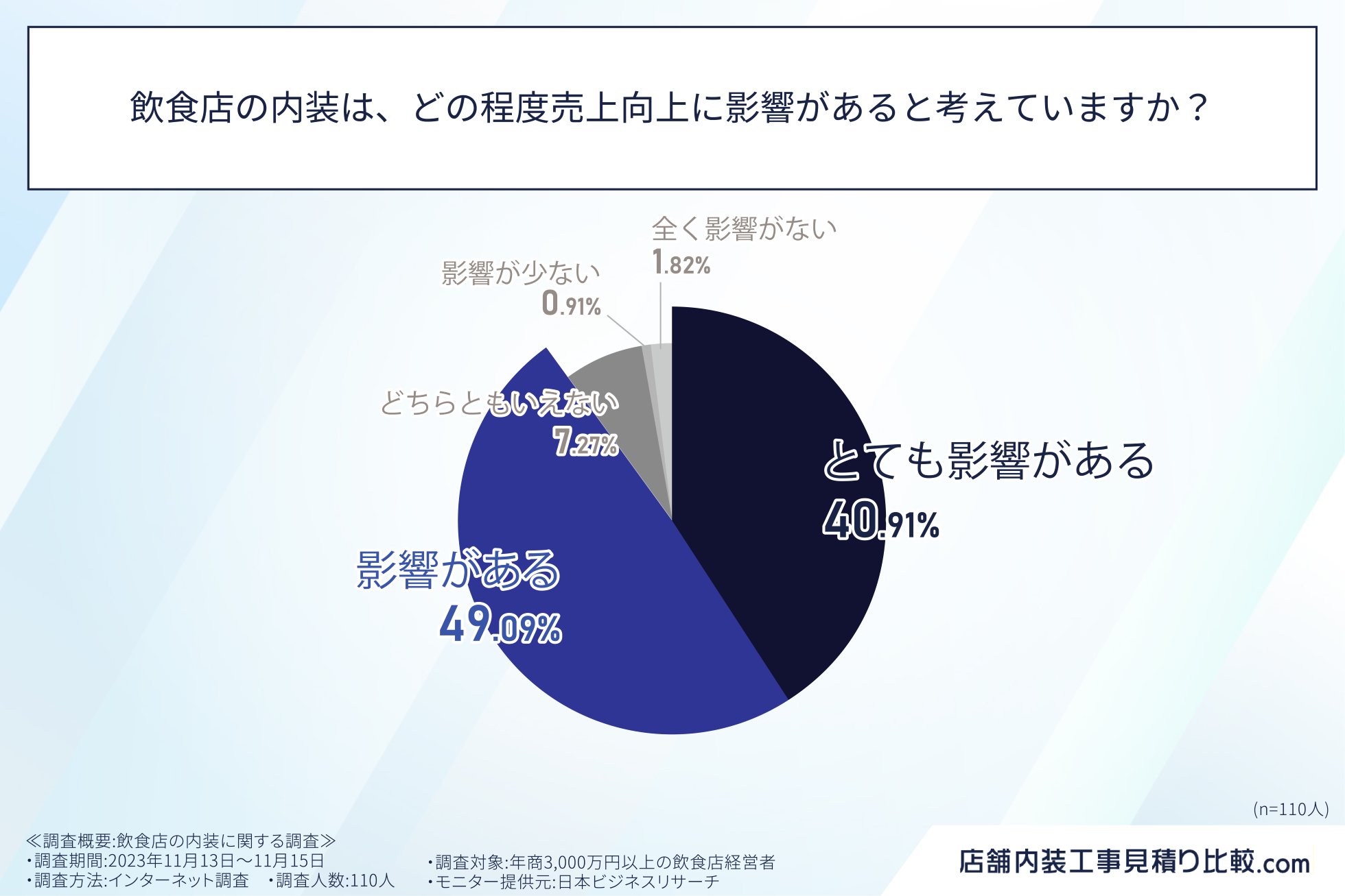 調査から、経営者の9割が「飲食店の内装は売上に影響する」と考えていることが分かります。
