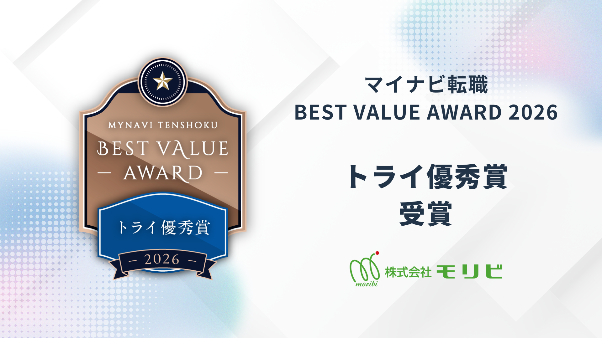 株式会社モリビ(本社:長野県長野市、代表取締役:森山アリエル)は、株式会社マイナビが運営する総合転職情報サイト『マイナビ転職』主催の「マイナビ転職BEST VALUE AWARD 2026」において「トライ優秀賞」を受賞いたしました。
