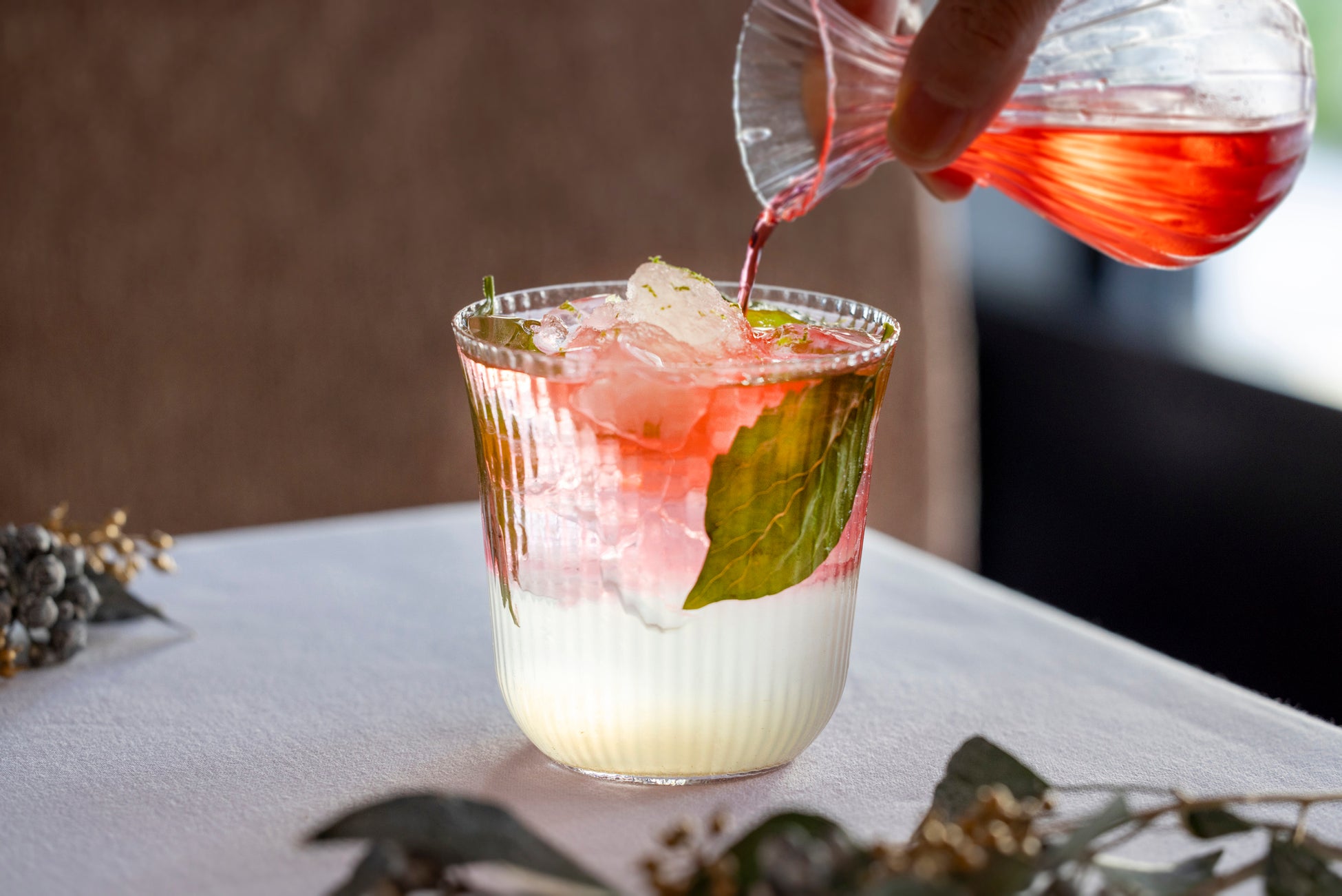 ル・プリスティン東京1周年を記念して、特別にアレンジした期間限定のフェスティブカクテルです。アントワープ本店で人気の「パインクーラー」をリメイクし、ベルギーのチェリービールに代わりシャンパーニュを使用することで、より洗練された味わいに仕上げました。洋梨とチェリーリキュールの自然な甘さに、パインハニーの優しい温かみを加え、シャンパーニュを注ぐことでカクテル全体に上品さをもたらしています。さらに、フレッシュなバジルとアマルフィ産レモングラニータが爽やかなアクセントとなり、一口ごとにイタリアのエッセンスを感じられる贅沢な一杯です。クリスマスカラーを取り入れた美しいグラデーションが華やかな、まさにフェスティブシーズンにふさわしいこのカクテルで、特別な夜をお楽しみください。