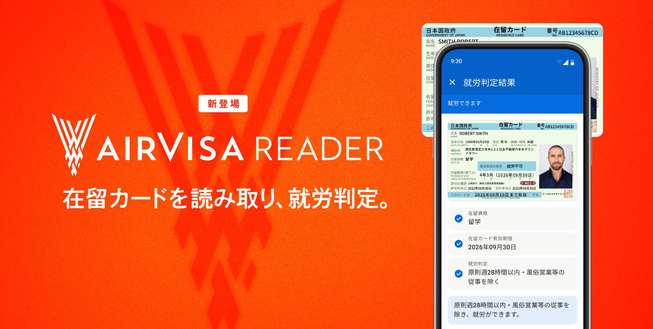 外国籍従業員ビザ管理・申請クラウドソフト「AIRVISA」が、在留カード情報収集・就労判定アプリ「AIRVISA READER」を公開