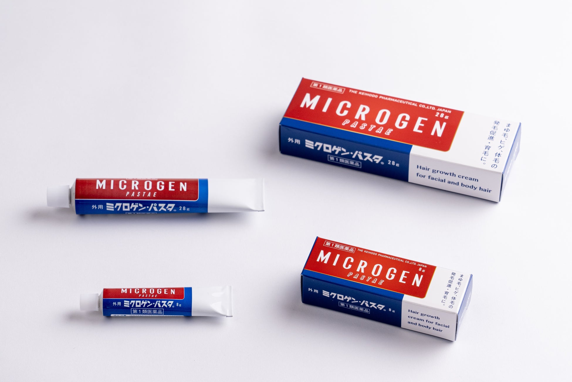 「ミクロゲン・パスタ」は、まゆ毛、ヒゲ、その他の体毛用発毛・育毛剤(第1類医薬品)で、2種類の男性ホルモンを主成分とするクリーム状の外用薬です。(頭髪、マツ毛には使用出来ません)「ミクロゲン・パスタ」を対象の部位に塗布すると、皮膚から浸透した有効成分が毛母細胞に作用し、頭髪以外の顔と体の「毛」の発毛・育毛効果が期待できます。「ミクロゲン・パスタ」は第1類OTC医薬品で、全国の薬局、ドラッグストア、ネット通販(楽天、ヤフーショッピング等)の第1類医薬品取扱い店舗で購入できます。