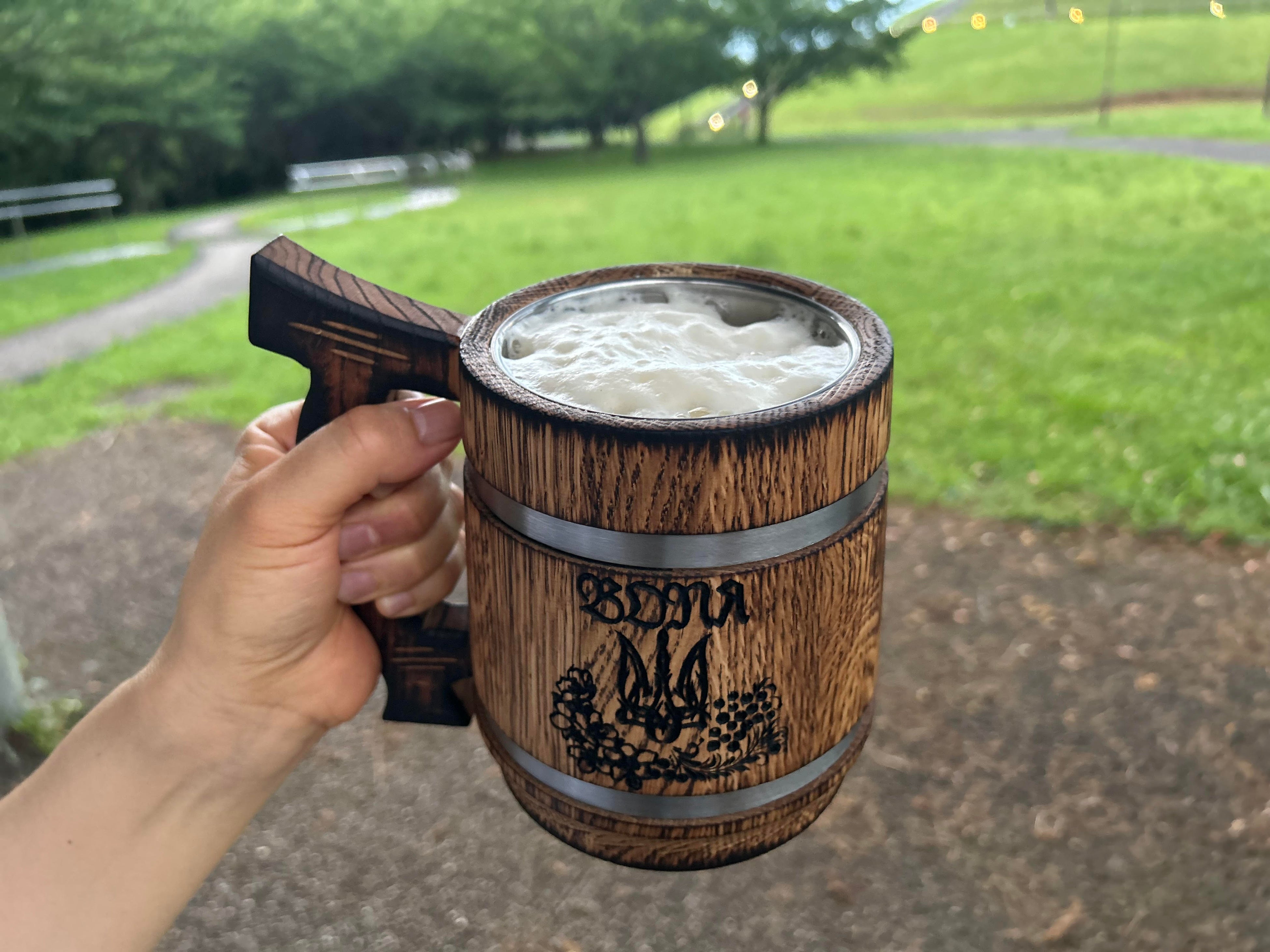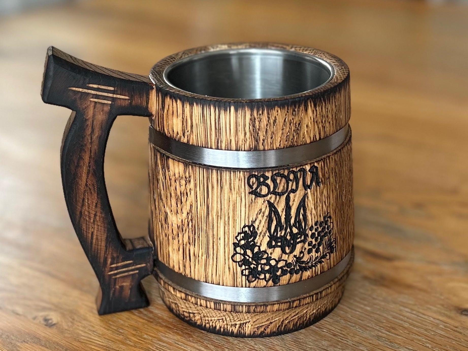 商品●ウクライナオークの手作りマグ(ステンレスインサート)