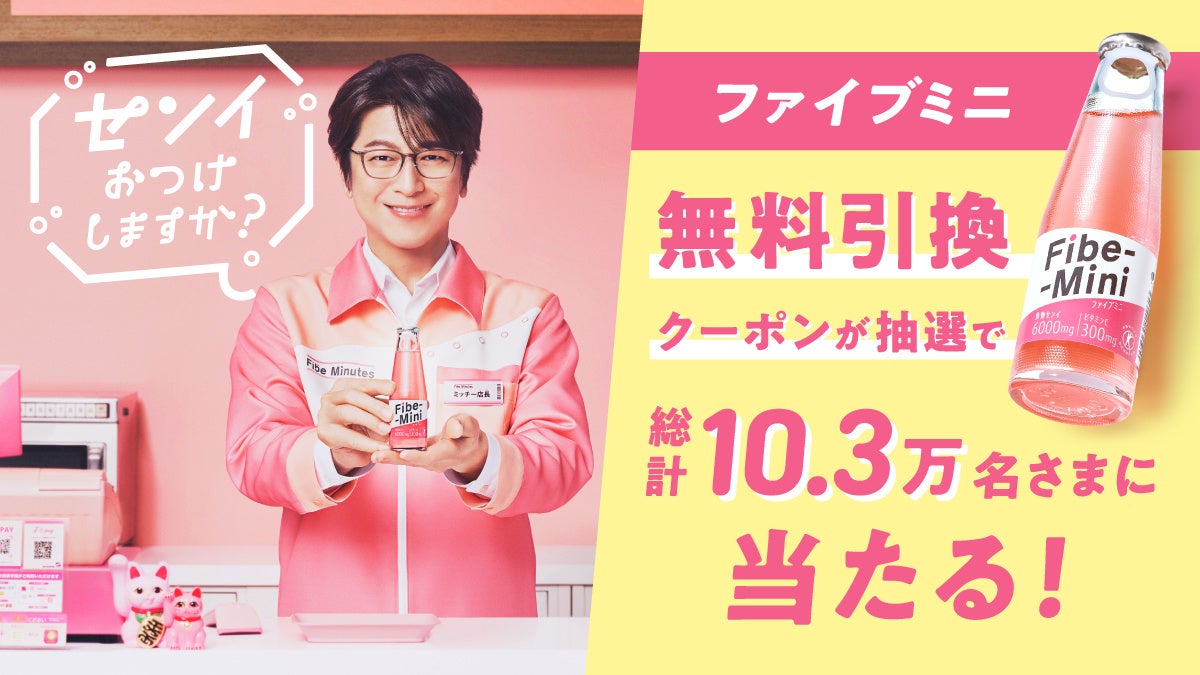 「センイおつけしますか?」の配信と連動し、大塚製薬LINE公式アカウントにて、総計10.3万名さまに、全国のセブン-イレブン・ファミリーマート・ローソンで使えるファイブミニ無料引換クーポンが抽選で当たるキャンペーンを実施します。