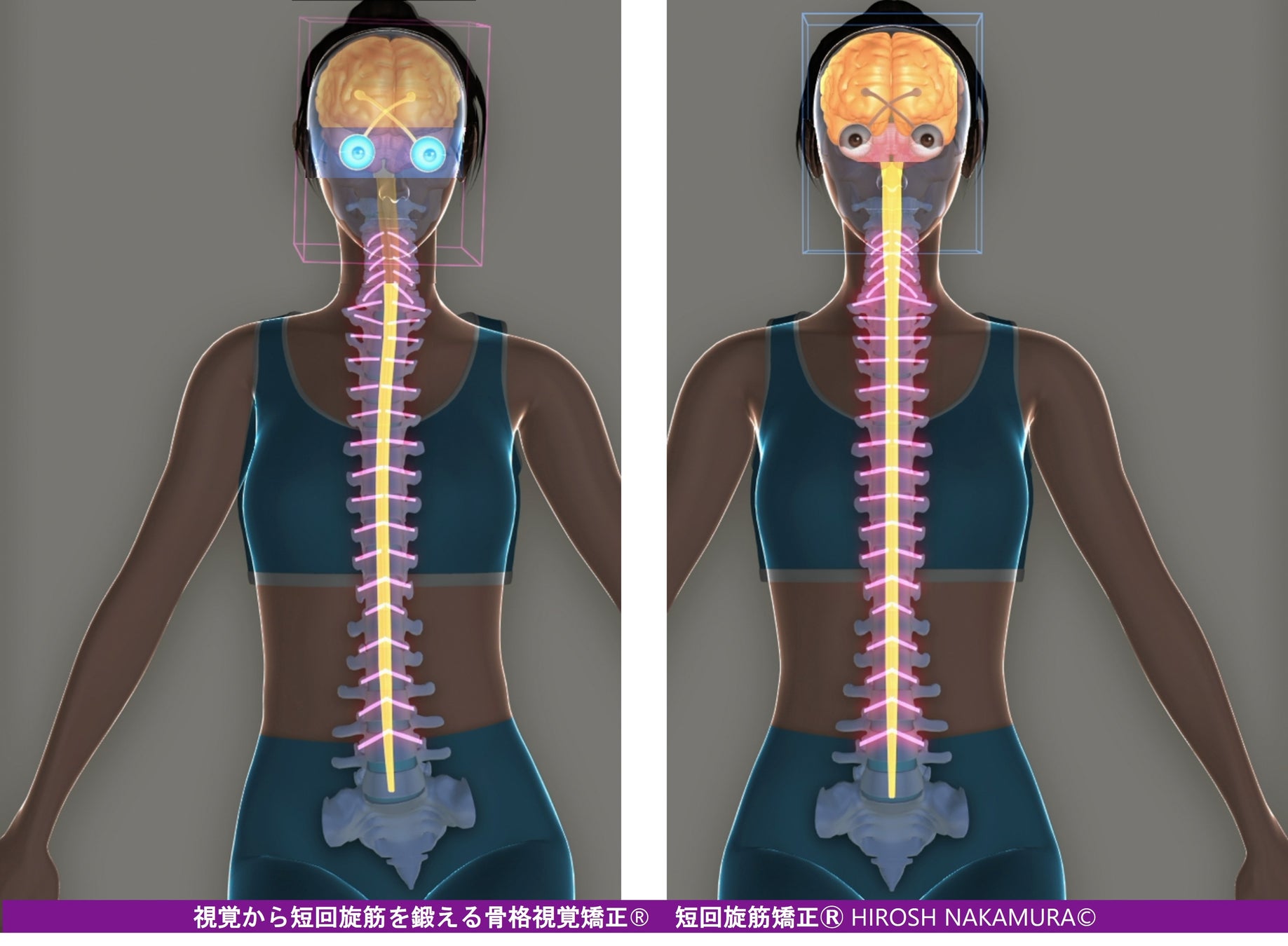 中村接骨院では、体の最も深い部分(一般的に「インナーマッスル」と呼ばれる筋肉群よりもさらに内側)にある「短回旋筋」という背骨一つ一つを結ぶようについている小さな筋肉を「視覚」からのアプローチで整えることで背骨の一つ一つが精度高く整う器具を発明し、レンタルサービスを提供しています。(「短回旋筋矯正(R)」「骨格視覚矯正(R)」)