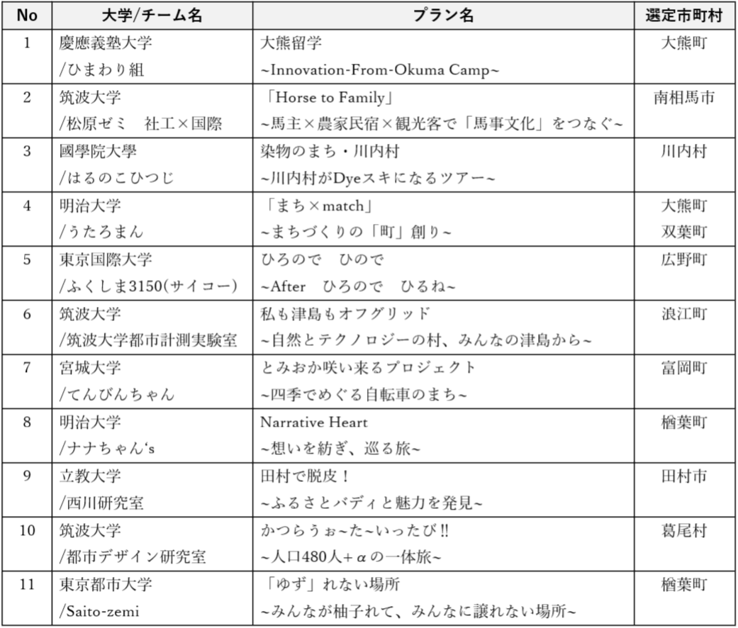 この夏、多くの大学生が自ら12市町村を訪れ、フィールドワークを行い、それぞれの専門分野を生かした福島12市町村を盛り立てる観光まちづくりプランを作り上げました。