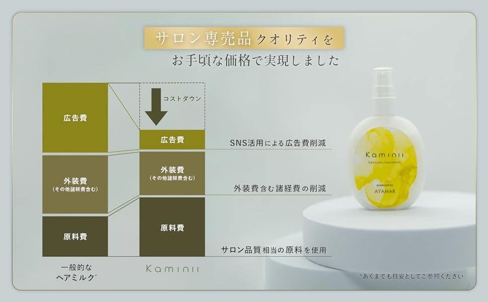 Kaminiiは、多くのお客様が長くご利用いただけるよう、サロン品質のヘアケアをお手頃にご提供することを実現しております。