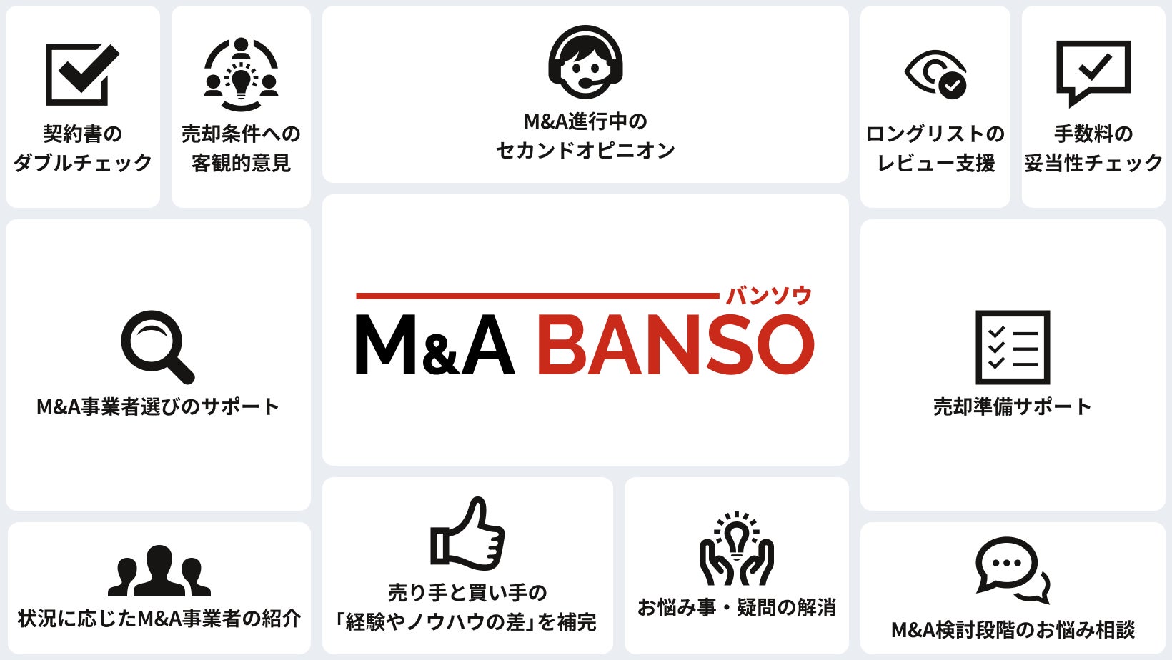 あらゆる形式のM&Aにおいて、フェアなM&A取引を実現し、そして売り手オーナー様の悔いのないM&Aを実現するために「M&A BANSO」の提供を開始しました。