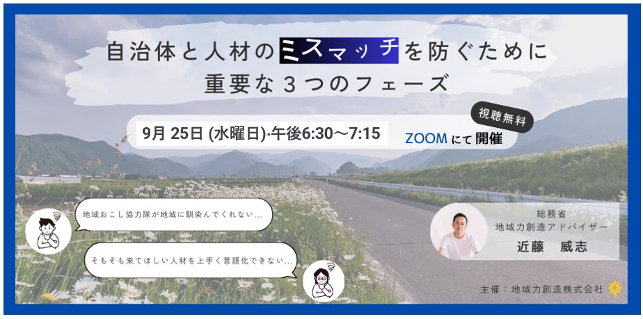 一方で、「自治体の思惑」と「委嘱した人材やその活動」が大きな齟齬を生じてしまうこともしばしば。本ウェビナーでは、共に地域の未来を考え行動する人材を採用するために、気をつけなければならないポイントとその解決策についてご紹介します!