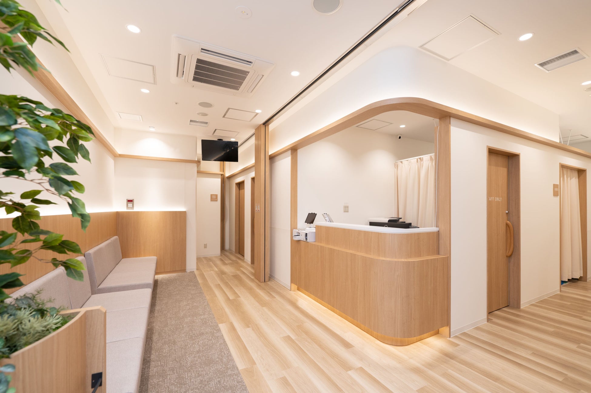 当院はイオン葛西店2階にあり、平日・土日・祝日ともに20時30分まで受診できます。院内は木目調と緑を基調としたやわらかい雰囲気とゆとりを感じる空間で、患者様をお迎えします。また、オンラインにて事前予約、問診票の記入ができるので、待ち時間を短縮してスムーズに受診していただけます。受診は患者様のご希望に合わせて来院およびオンライン診療にてお選びいただけます。