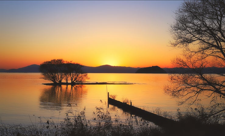 琵琶湖のほとりで癒しの時間を。当施設は壮大な琵琶湖や日本遺産「竹生島」を一望できるグランピング施設。心を優しく包み込む雄大な景色はずっと眺めていたくなる美しさ。