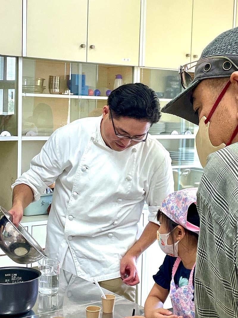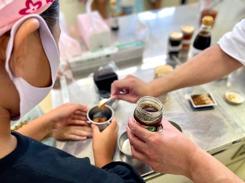 キッズは9月8日、杉戸産のフルーツジャムやはちみつ、お米をベースにおかきの「味」を考えました。ポイントになる食材や加える割合を決め、3種類の味を試作。本来もち米で作る生地の代わりに、杉戸町産うるち米に各食材を炊き込んで食べ比べました。