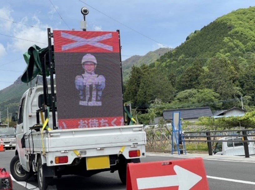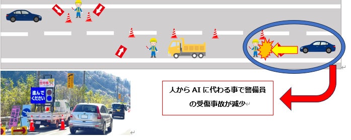警備員の代わりにAIが片側交互通行の誘導警備を行うシステムです。