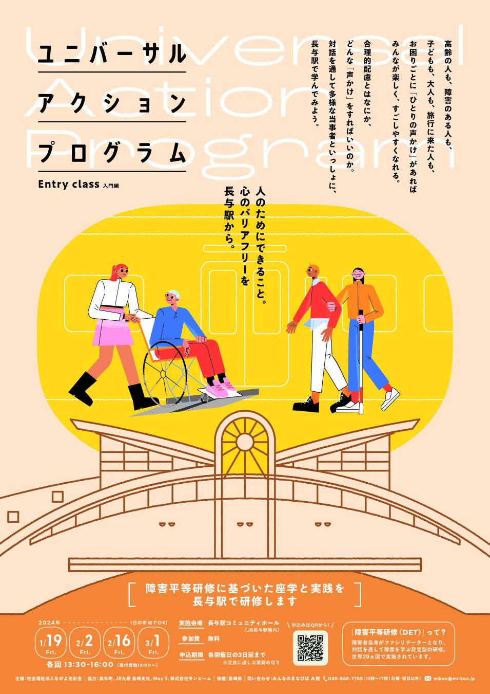 JR長与駅を舞台としたプログラムを通じて、知り、感じ、学んだことが、みなさまの日常生活における小さなアクションにつながり、誰もが「ともに生きる」まちづくりの一助となることを期待いたします。
