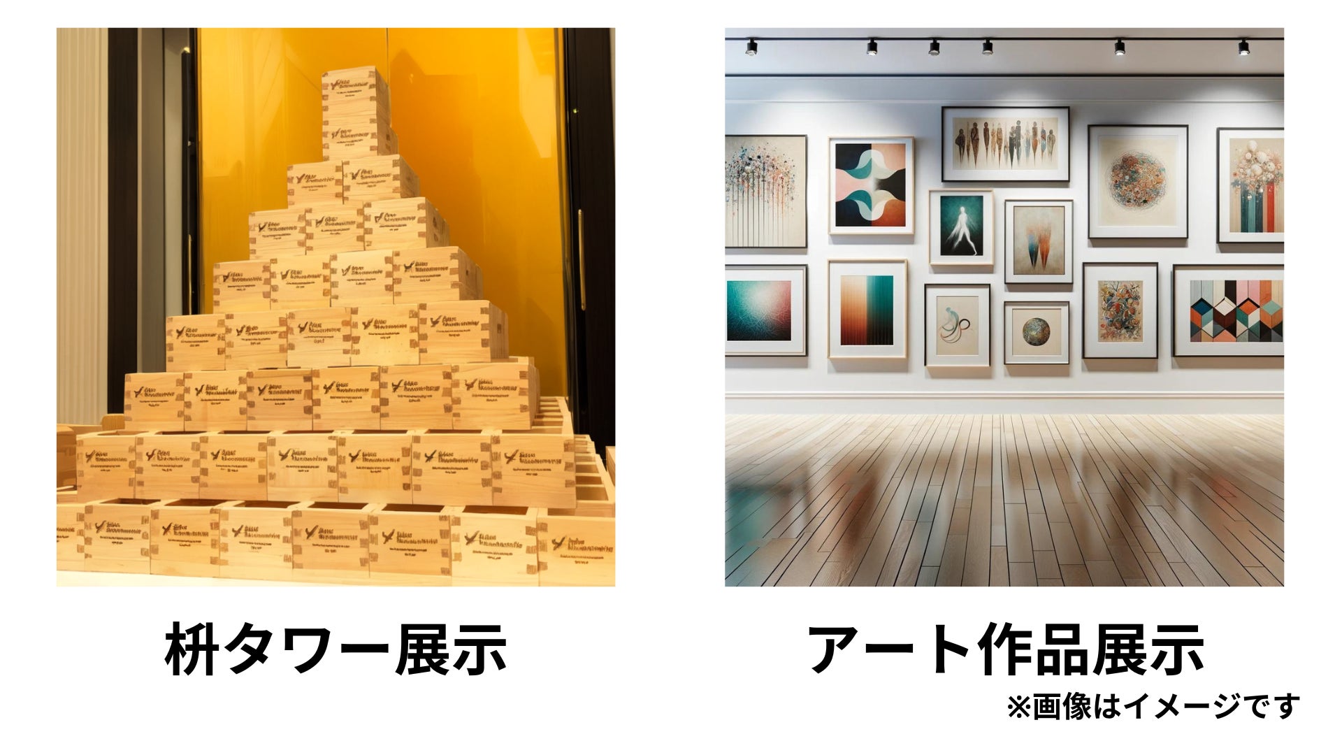 さらに、1300年続く日本の伝統工芸「枡」のブランド「FOMUS」として、ギャラリー内に、枡を積み重ねて作る「枡タワー」も設置予定。