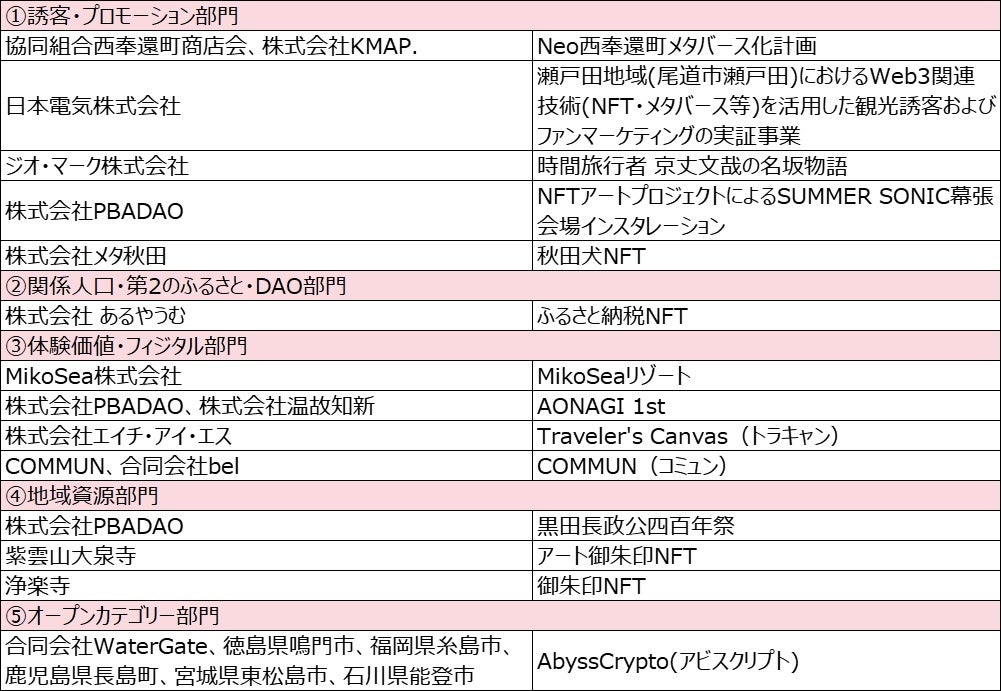 表彰対象者は、国内のツーリズム産業に資するNFTプロジェクトの実施事業者です。表彰部門は計5部門、今回はグランプリ5プロジェクト、ゴールド賞5プロジェクト、シルバー賞15プロジェクトが決定しました。今後、受賞プロジェクトの対外発信も積極的に行い、業界全体への波及の最大化に努めます。