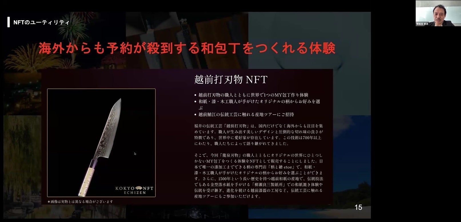「日本の職人さんは非常にレベルも高く、世界からの興味も高いのに、職人気質で流通や自らの売込みには無頓着だったり、奥ゆかしかったりで、されない方が多いです。こういった世界共通言語や最新技術を活用して日本のみならず、世界中にアピールしていく素晴らしいプロジェクトと思いました」