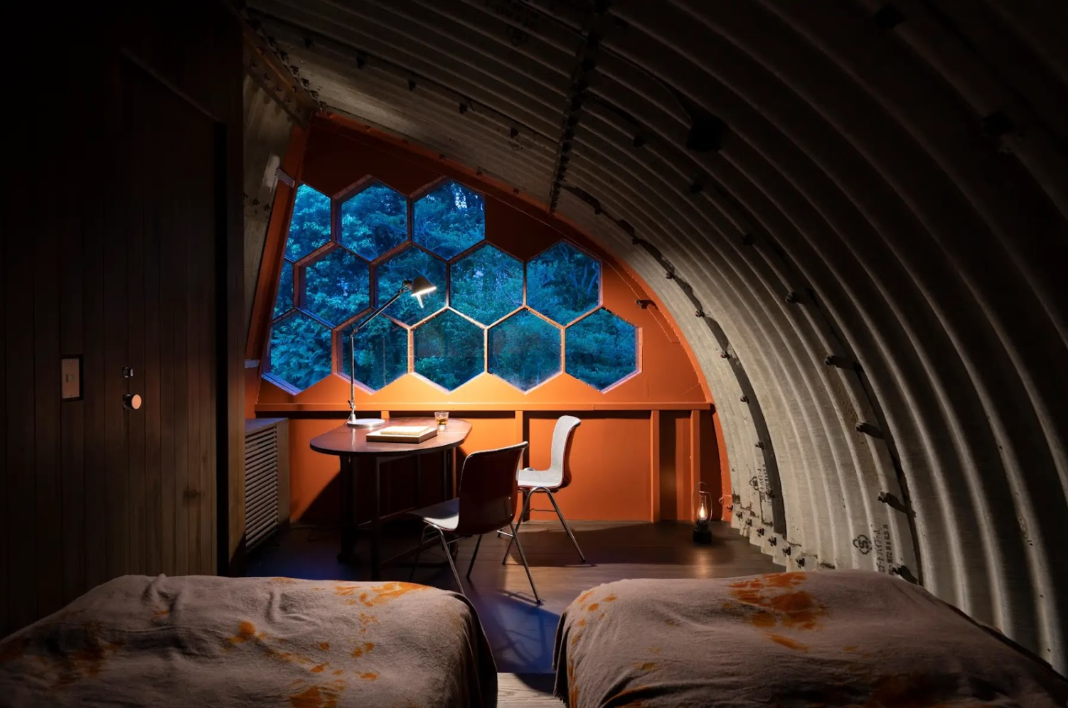 愛知県豊橋市に位置する一棟貸し宿泊施設。1965年に建築家・プラントエンジニアの川合健二氏が自邸として建てた日本最古のコルゲートハウスを再生。「一晩、地球と縁を切ってみる体験」をコンセプトに、デジタルデトックス、自然との共生、自給自足の体験を提供しています。