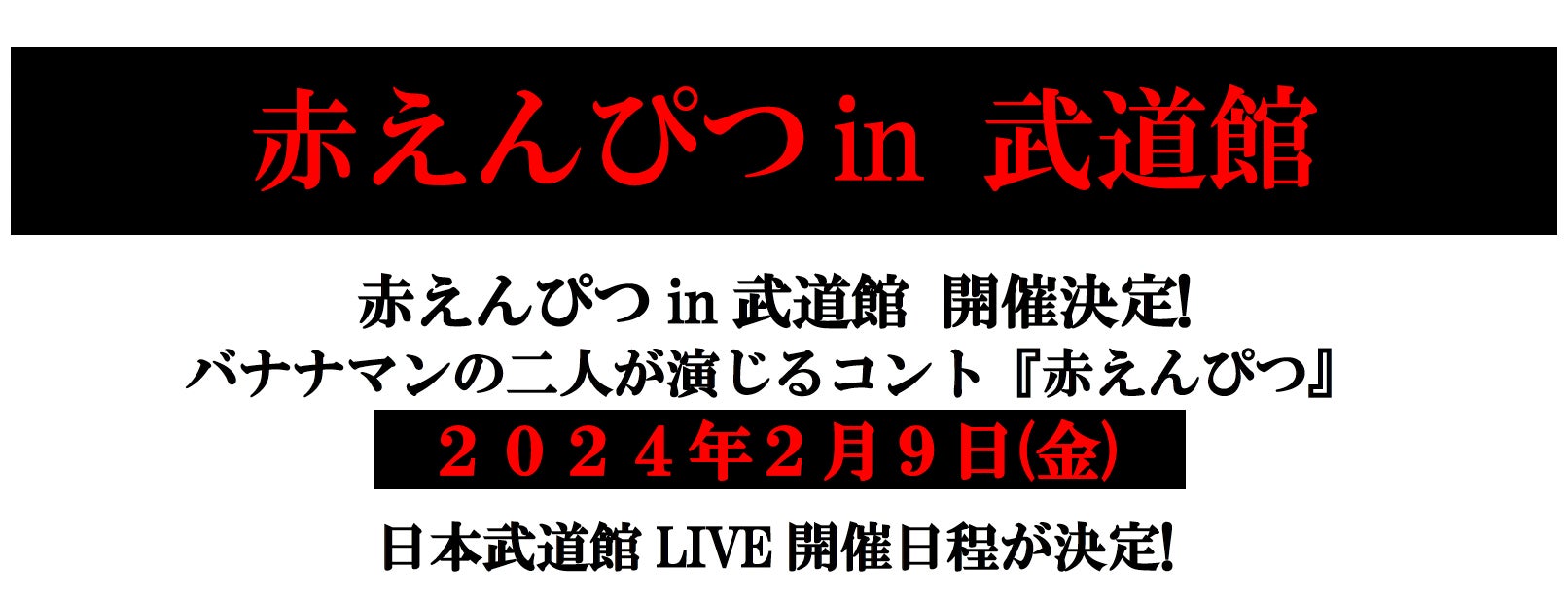 赤えんぴつin日本武道館 開催決定 バナナマンの二人が演じるコント『赤えんぴつ』 2024年2月9日(金)日本武道館LIVE開催日程が決定!