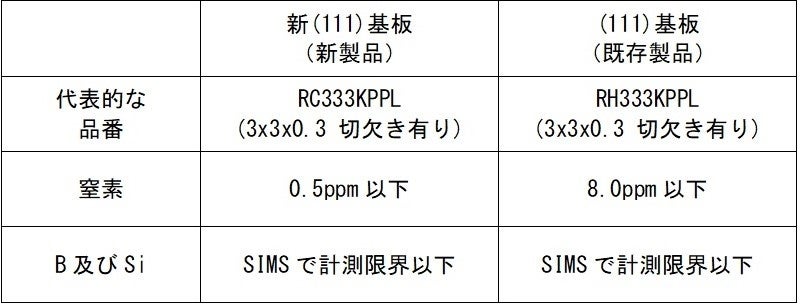 当社はこれまでも(111)面基板を販売してまいりましたが、当社の既存製品は窒素を8ppm以下含有しているため、高純度の成長層を形成した場合に、微小な結晶格子定数の差異が生じていました。このことは、成長したダイヤモンド層に応力を発生させたり、場合によっては欠陥が生じる要因となっておりました。