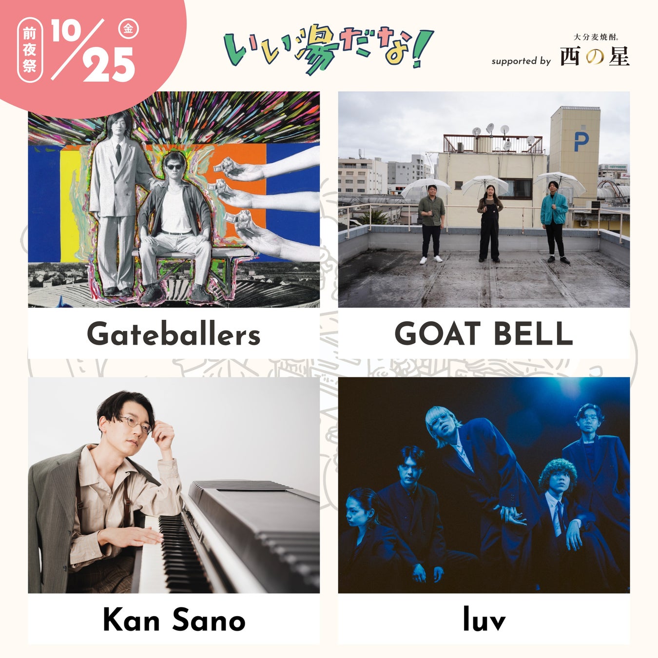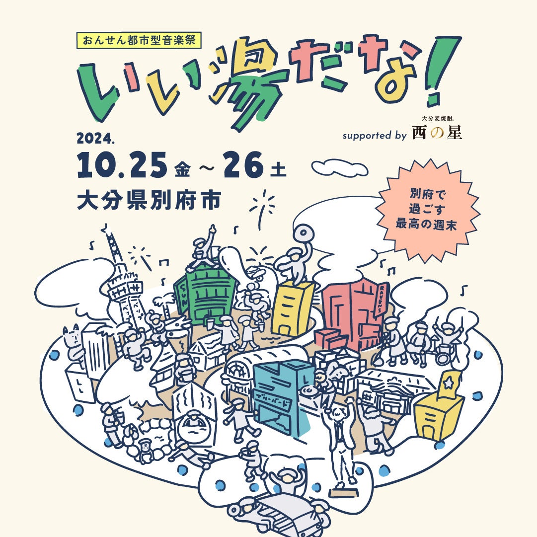 大分県内の特徴的な場所で、音楽LIVEを企画・運営するチーム「AKANEKO」は、昨年チケット完売で、大盛況のうちに幕を閉じた音楽フェス、『おんせん都市型音楽祭「いい湯だな!」2024 Supported by 西の星』 (以下、「いい湯だな!」 )を、今年も10月25日(金)、26日(土)の2日間、大分県別府市「別府北浜地区」で開催します。