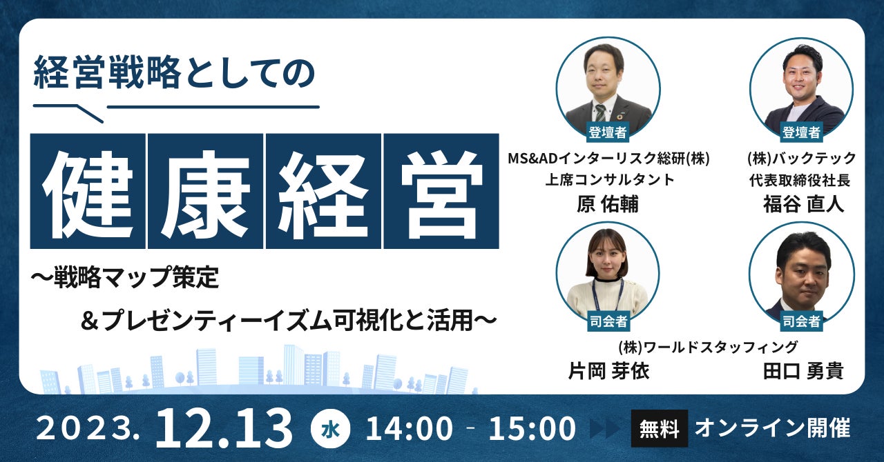 【経営層・健康経営推進担当向けセミナー】「経営戦略としての健康経営~戦略マップ策定&プレゼンティーイズム可視化と活用~」を12/13(水)に開催します。