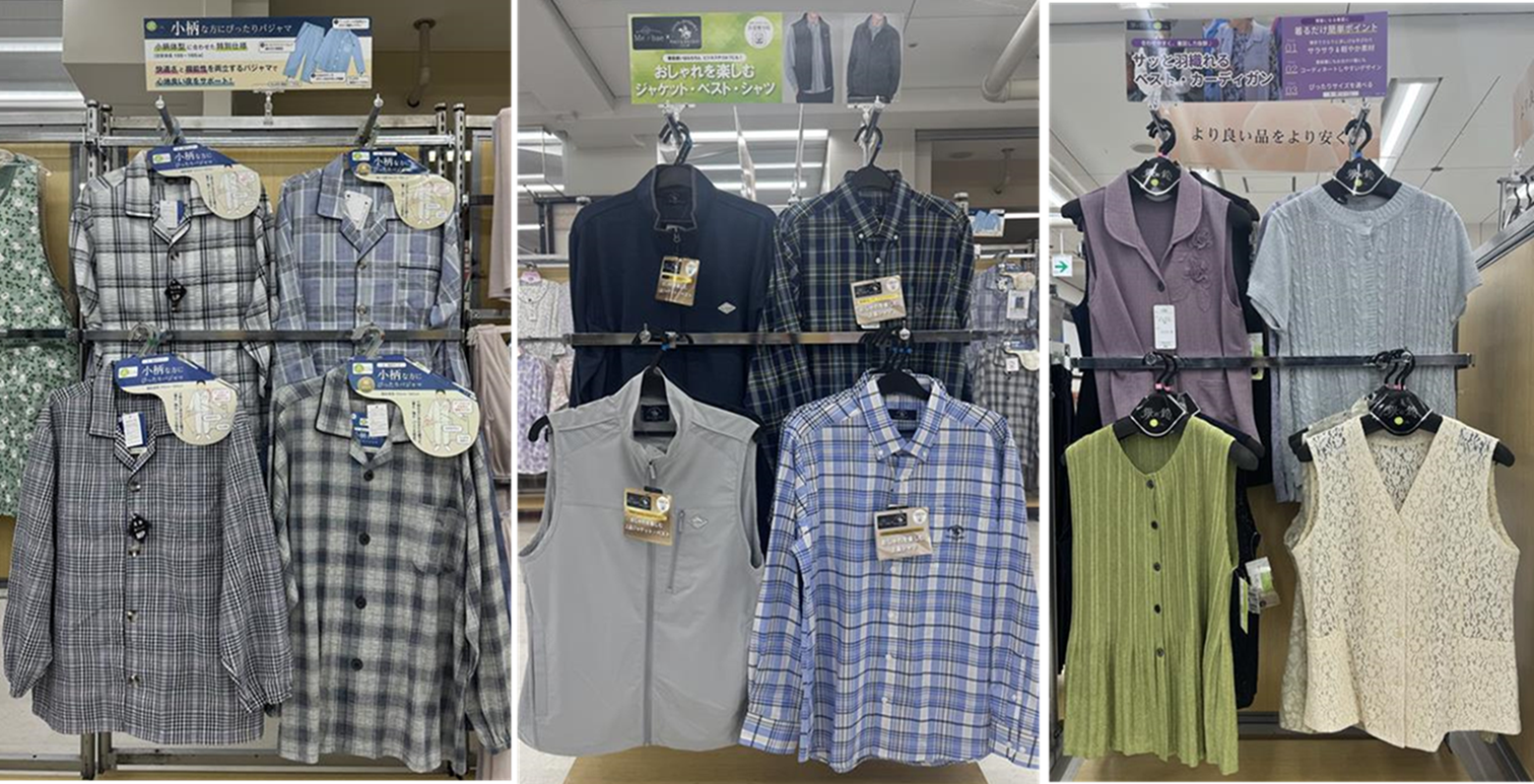 当社プライベートブランド商品のシニア・シルバー向けブランド「MEBAE(みばえ)」「衣ごごち(いごこち)」※からは、新しいカテゴリーであるナイトウェア(メンズ)と2025春夏物プルオーバー・ベスト・カーディガン・パンツ・インナーなどの新商品を紹介するとともに、導入店1,000店舗を超える“大西衣料のラックジョバー”の強みを訴求します。なお、新商品は、3月1日により、順次、導入店より販売開始します。