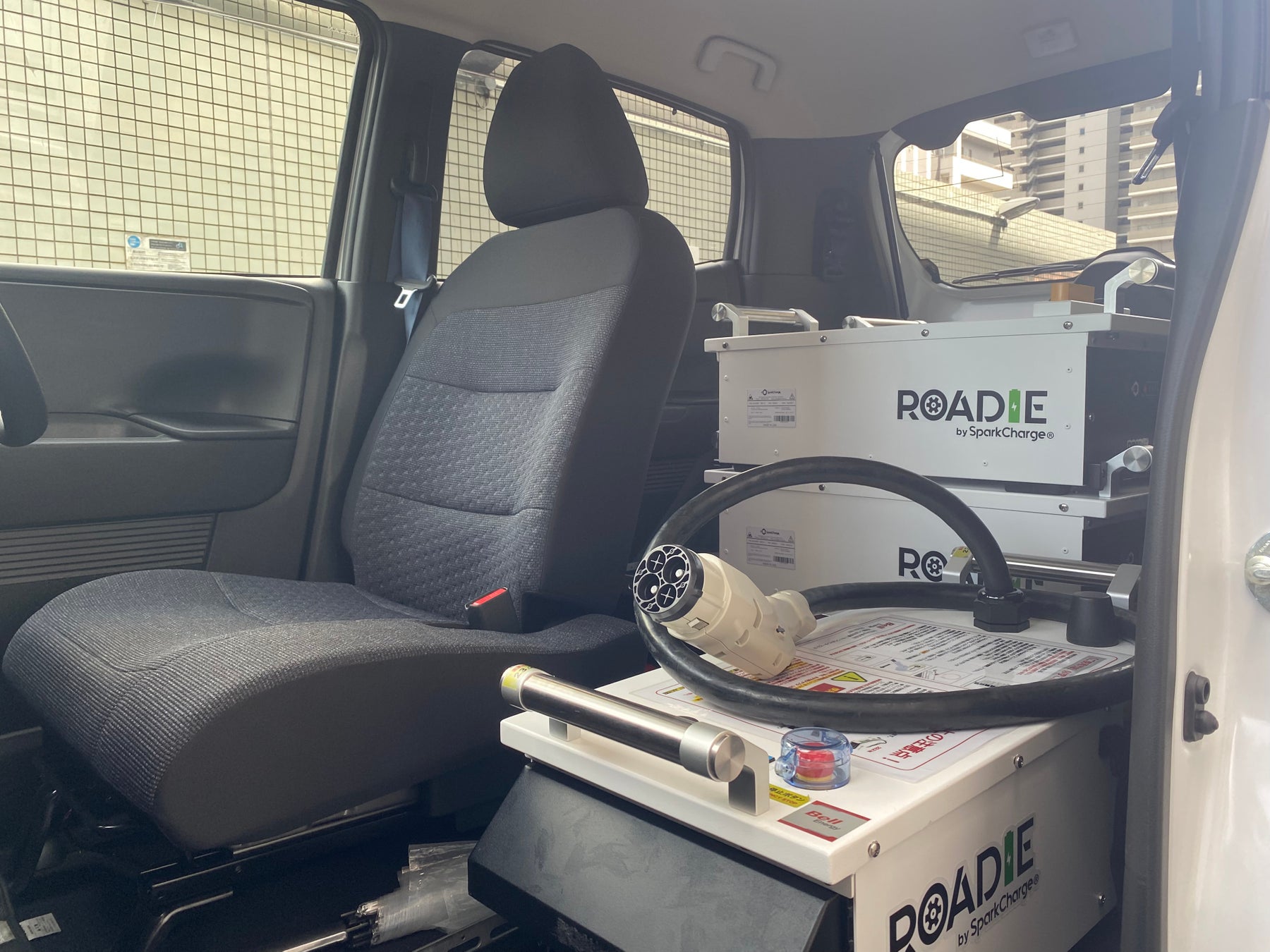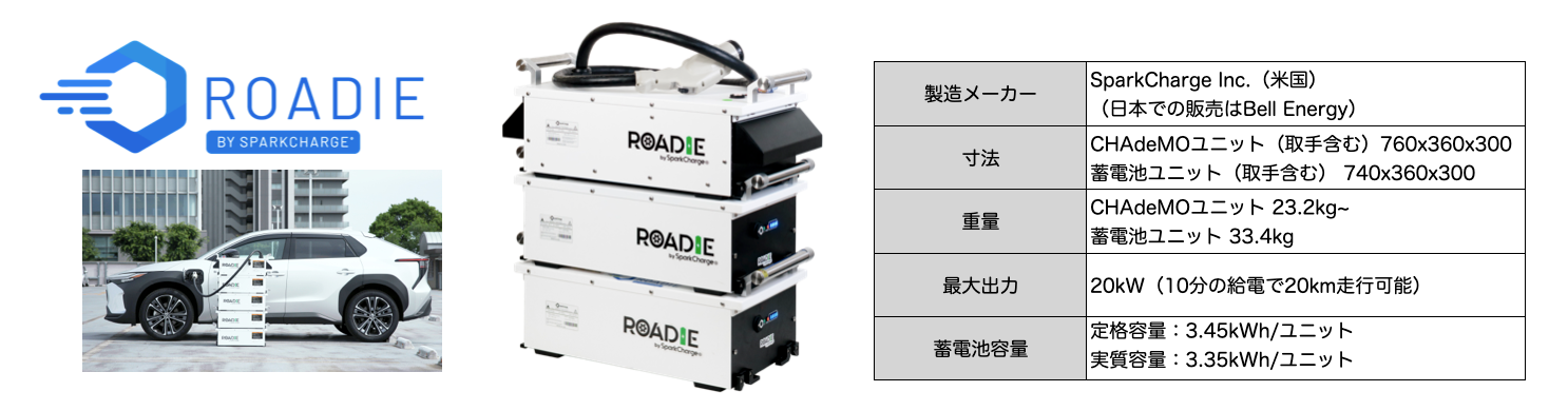 「Roadie V2」は、日本初※1のモジュール式ポータブル急速充電器、「どこでも急速充電」をコンセプトに、外部入力設備不要、完全スタンドアローン設計のEV急速充電器です。