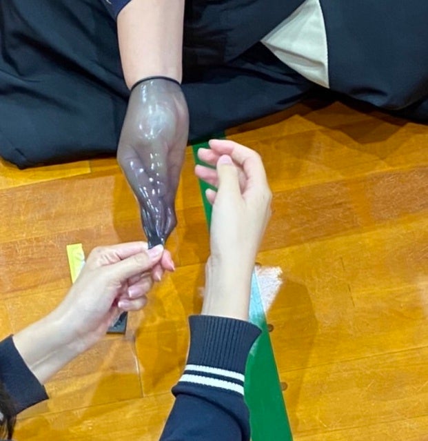 授業では、生徒がペアでコンドームを手指に装着し、素材や耐久性を確かめながら互いの反応を観察します。体験を先に置くことで、戸惑いや違和感、安心感といった多様な感情が生まれ、それを言葉にする過程が学びの中心となります。
