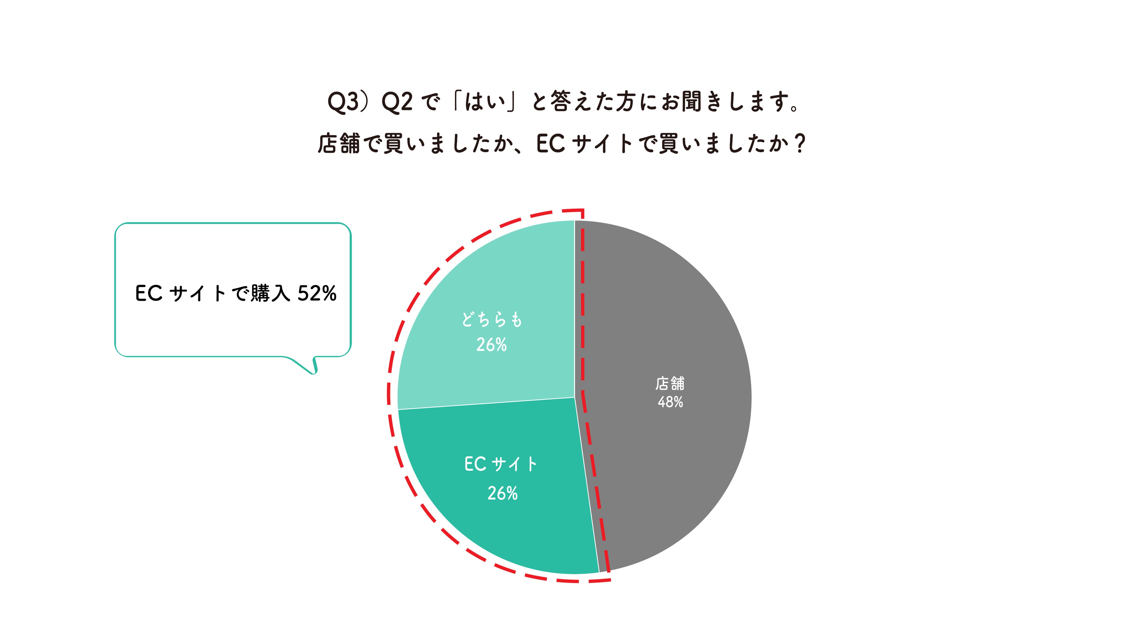 また一方で、48%の人が店舗のみで購入したことがあると回答しました。