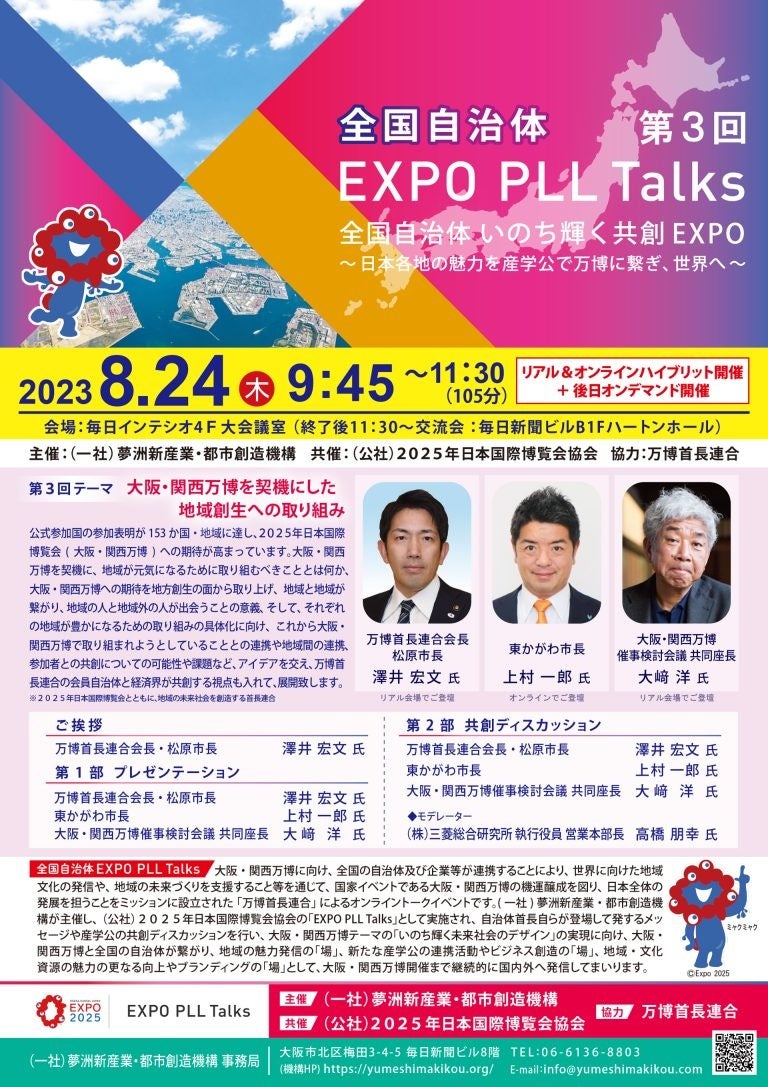 大阪・関西万博の機運醸成を図り、日本全体の発展を担うことをミッションに設立された万博首長連合によるトークイベント「第3回全国自治体EXPO PLL Talks」を開催致しました。