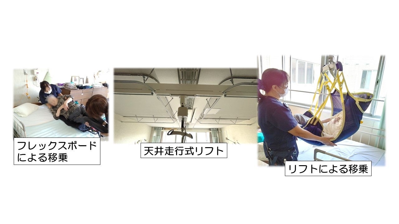 また複数職員での支援が必要な方のいる居室には天井走行リフトを導入し、一人での介助が行えることで1日24分の短縮に繋がった。