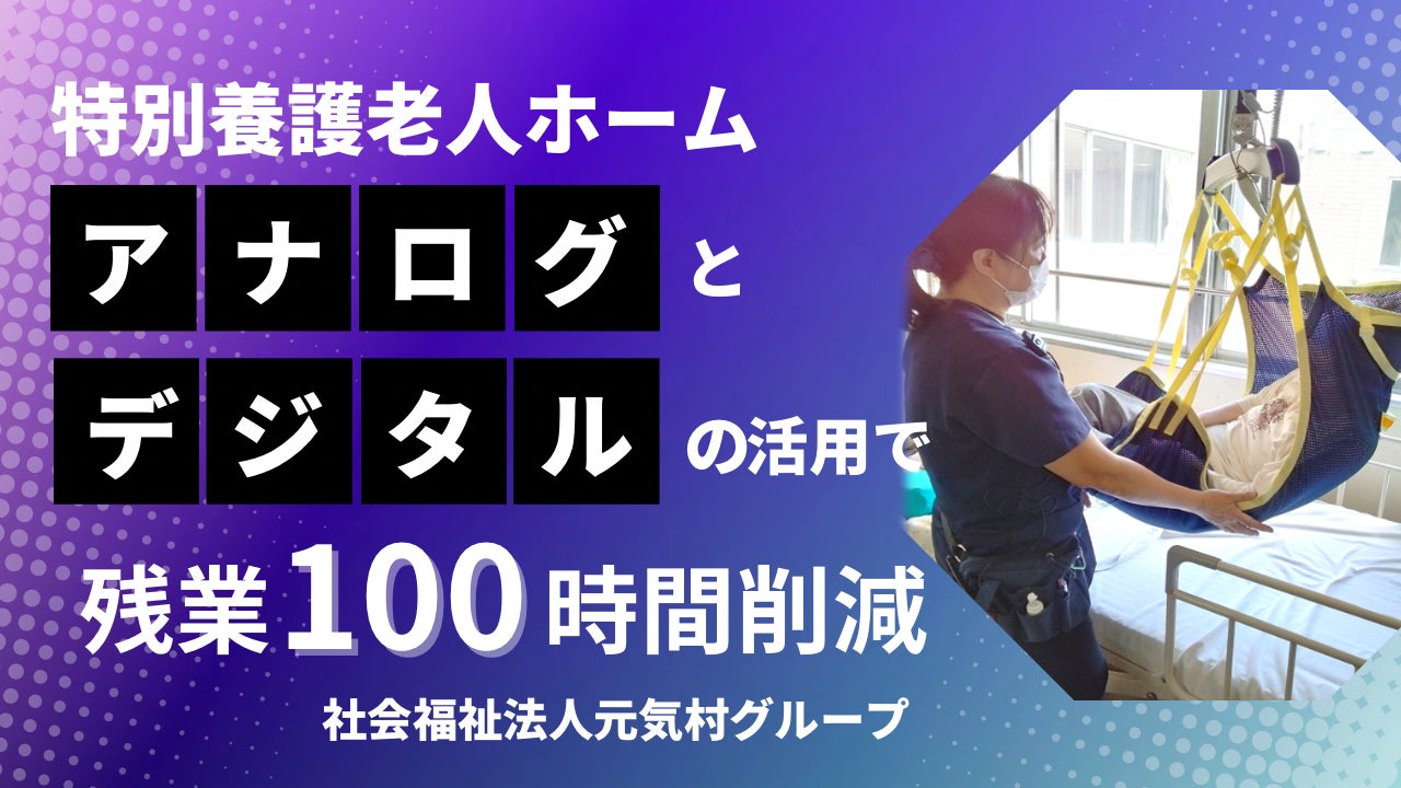 社会福祉法人元気村グループ(本社:埼玉県さいたま市、代表:神成 裕介)が運営する高齢者福祉・障害福祉サービス事業所「翔裕園」。そのグループ内施設の一つである特別養護老人ホーム「栗橋翔裕園 (埼玉県久喜市)」にてアナログとデジタルを組み合わせた業務改善を行い、施設全体で1年前と比べて残業を100時間改善することに成功した。