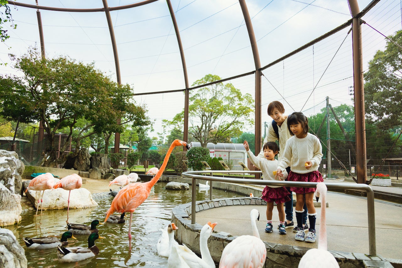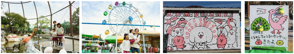 久留米市鳥類センターは、みどり豊かな敷地内に鳥類を中心とした動物を展示しています。動物とのふれあいを通じて命を感じる場所であると共に、園内には遊園地も併設しており、大人から子供まで楽しめる施設として多くの方々に親しまれています。