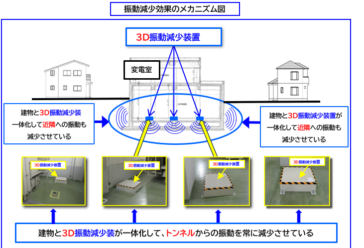 「世界初-3D振動減少装置」(特許取得)の紹介 「NEXCO」 高速道路トンネル上部施設や近隣、及び、様々な分野で振動減少効果を実証。