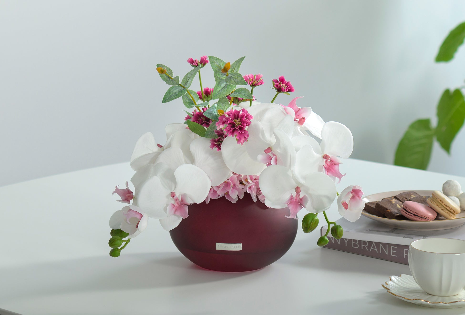 エミリオ・ロバは、フランスのアートフラワーブランドで、マキシム・ド・パリの出店やフランス大統領専用機の装飾を通じて“花の彫刻家”と称され、アートフラワーだからこそ生まれる造形美とインテリアの価値をも高める構成的な花器で豊かなライフスタイルを演出しています。花びらは思わず触ってみたくなるほど瑞々しく、花びらのしわや葉脈までリアルに再現し、フラワーデザイン界で無限の可能性を持つ唯一無二のアートフラワーブランドとして、世界中で人気となっています。