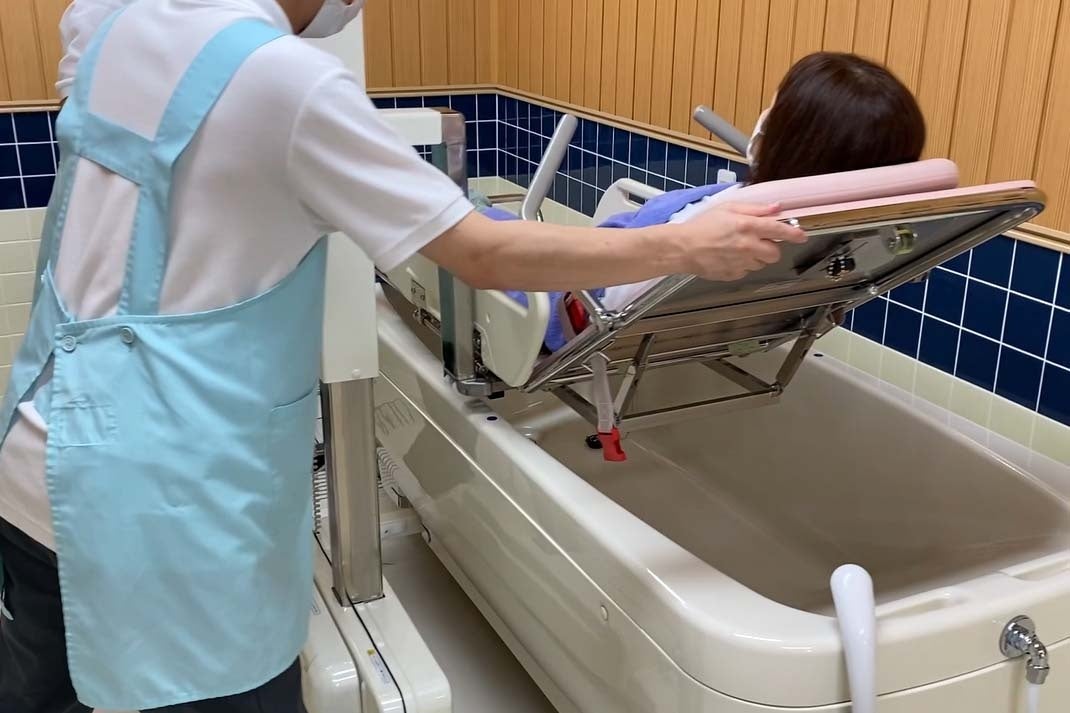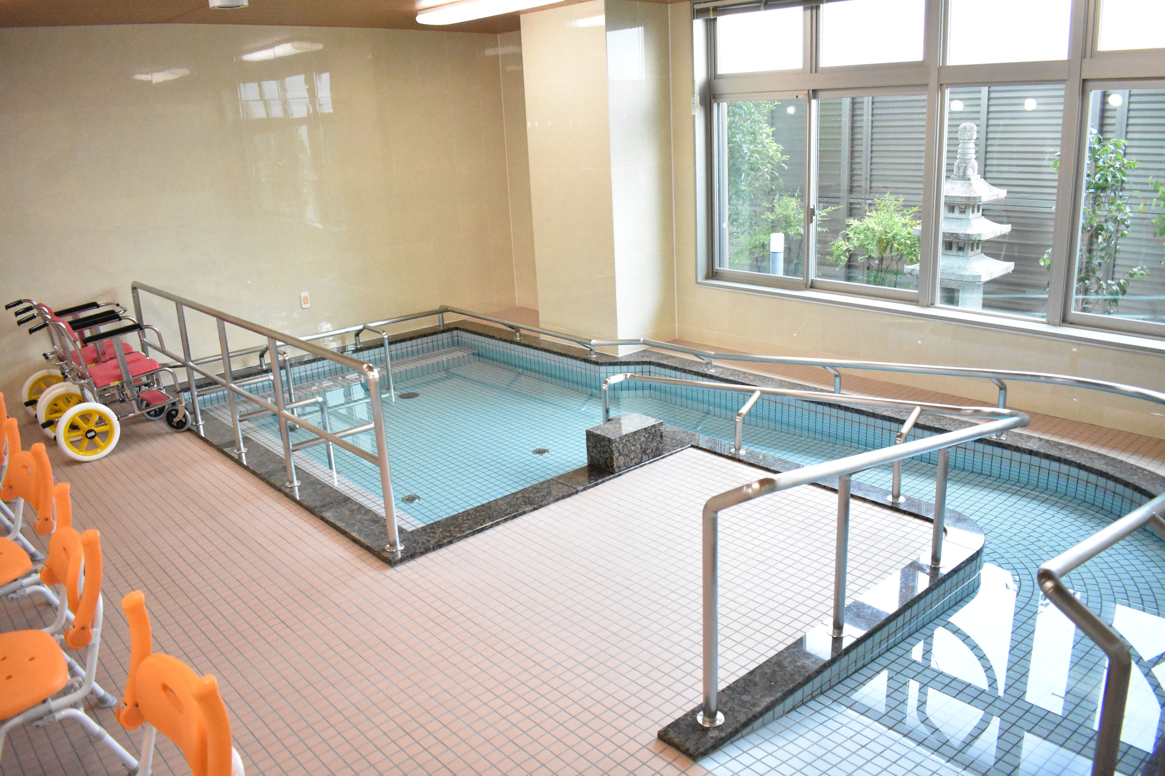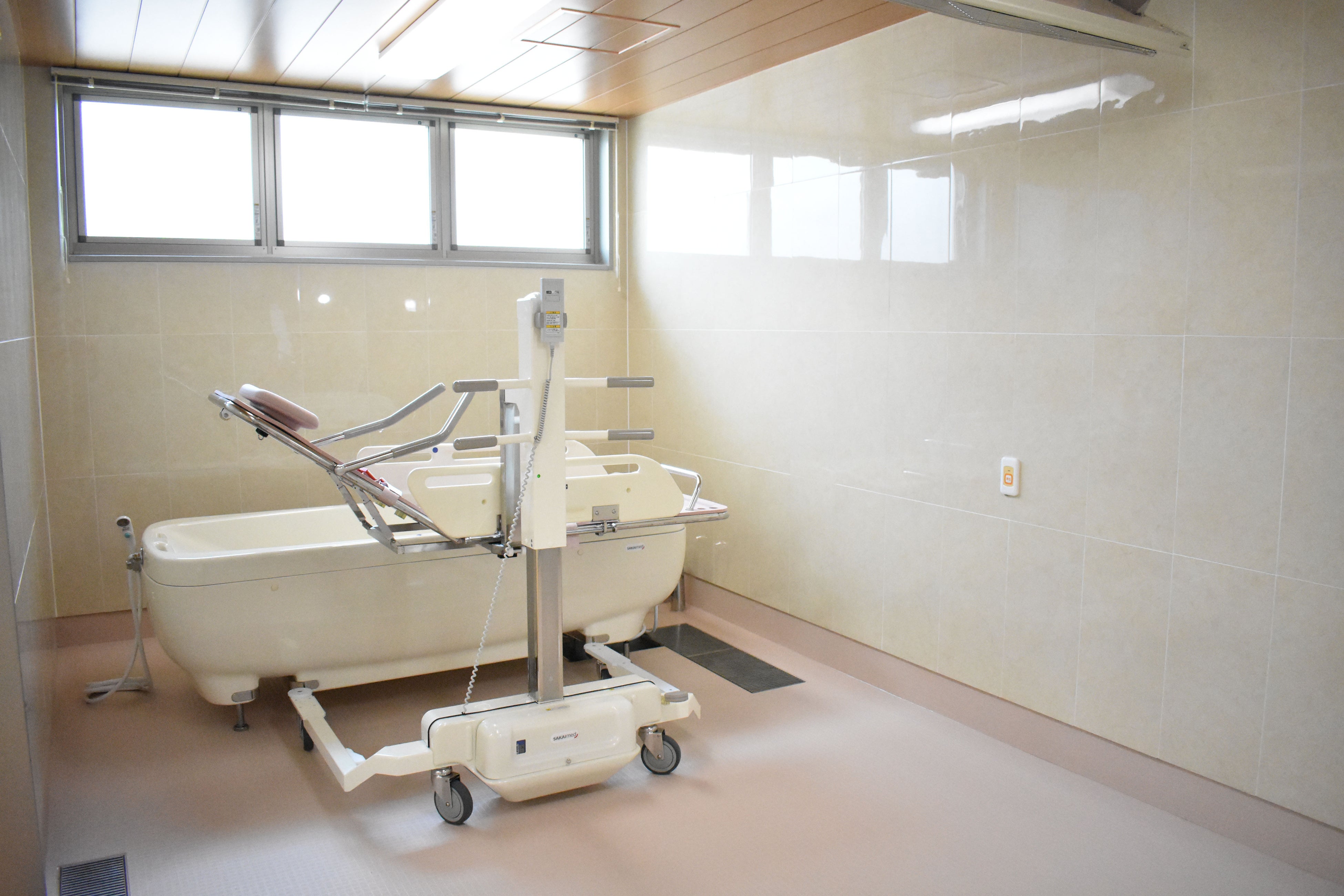 大浴場には車いすのまま浴槽に入れるようスロープを設置し、可能な限り大きなお風呂でゆったりと入浴いただけるよう工夫しました。寝たきりになられた方にも可能な限り入浴していただけるよう、機械浴槽もご用意しています。★★内覧会当日、デモンストレーションでご覧いただけます★★