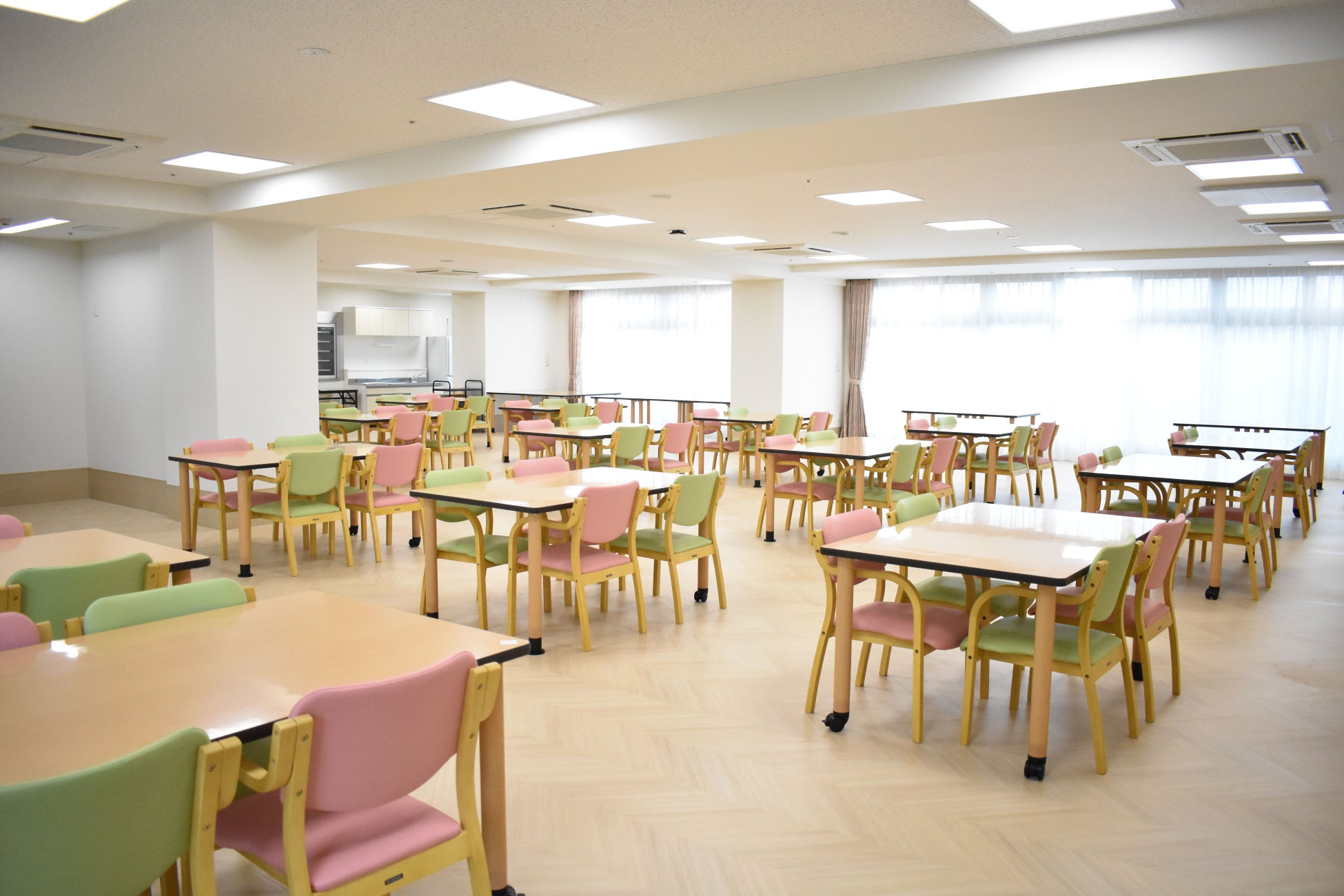 共用設備/食堂、浴室(一般浴・機械浴・個浴)、ヘルパーステーション、健康管理室、談話コーナー、理容室、相談室、ファミリールーム、洗濯室、トイレ、エレベーター