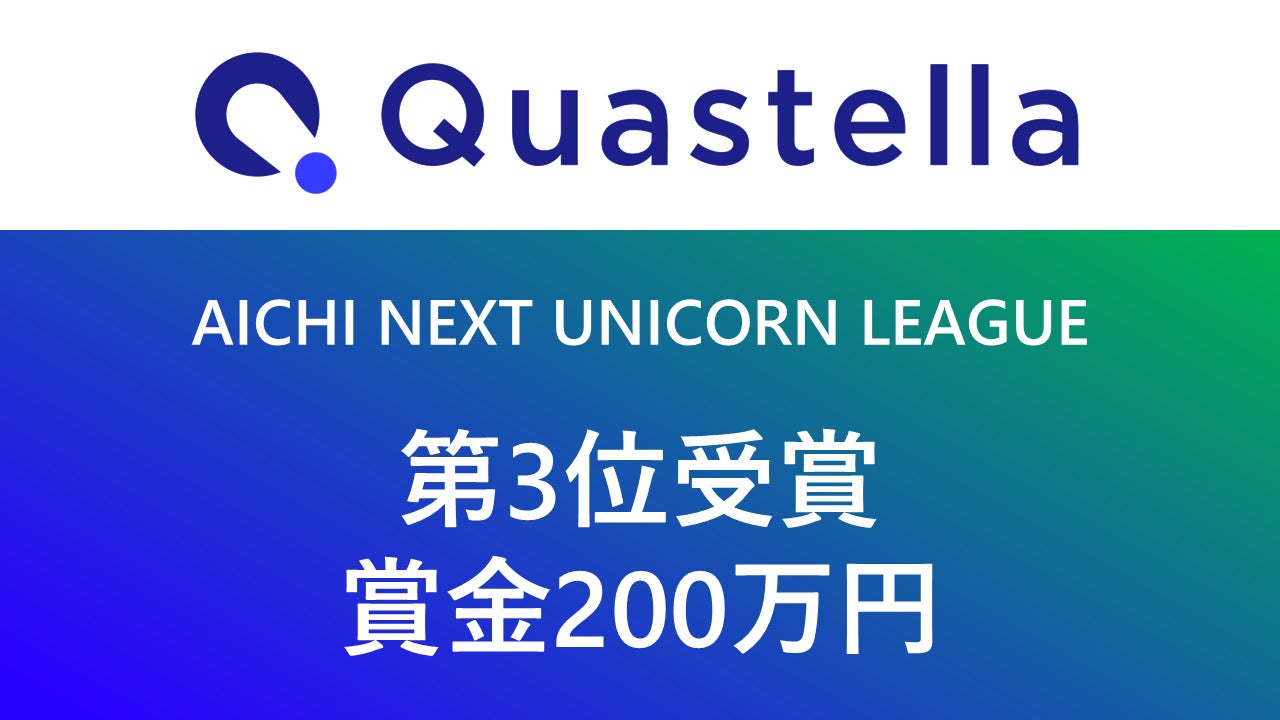 株式会社Quastella(本社:愛知県名古屋市、代表取締役CEO:竹本悠人、以下、当社)は「AICHI NEXT UNICORN LEAGUE」シーズン1最終審査会(2024年9月26日 名古屋インターナショナル レジェンドホールにて開催 主催:愛知県、運営:株式会社eiicon)にて、第3位受賞、賞金200万円を獲得しました。