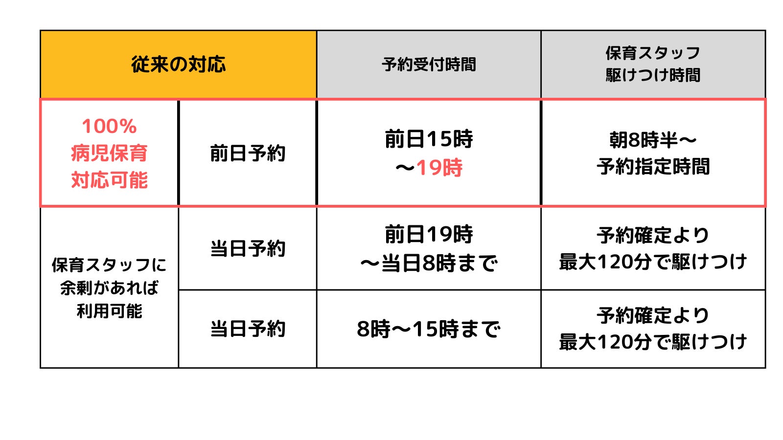 また、19時以降~当日のご予約に対しては、保育スタッフに余剰があればできる限り対応をしてまいりました。