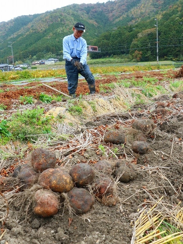 1つの種芋から1玉しか収穫できないため大量生産が難しく、また、傷つけないようひとつひとつ手掘りで収穫するなど栽培にとても手間がかかるため、生産量が少なくなかなか市場に出回りません。