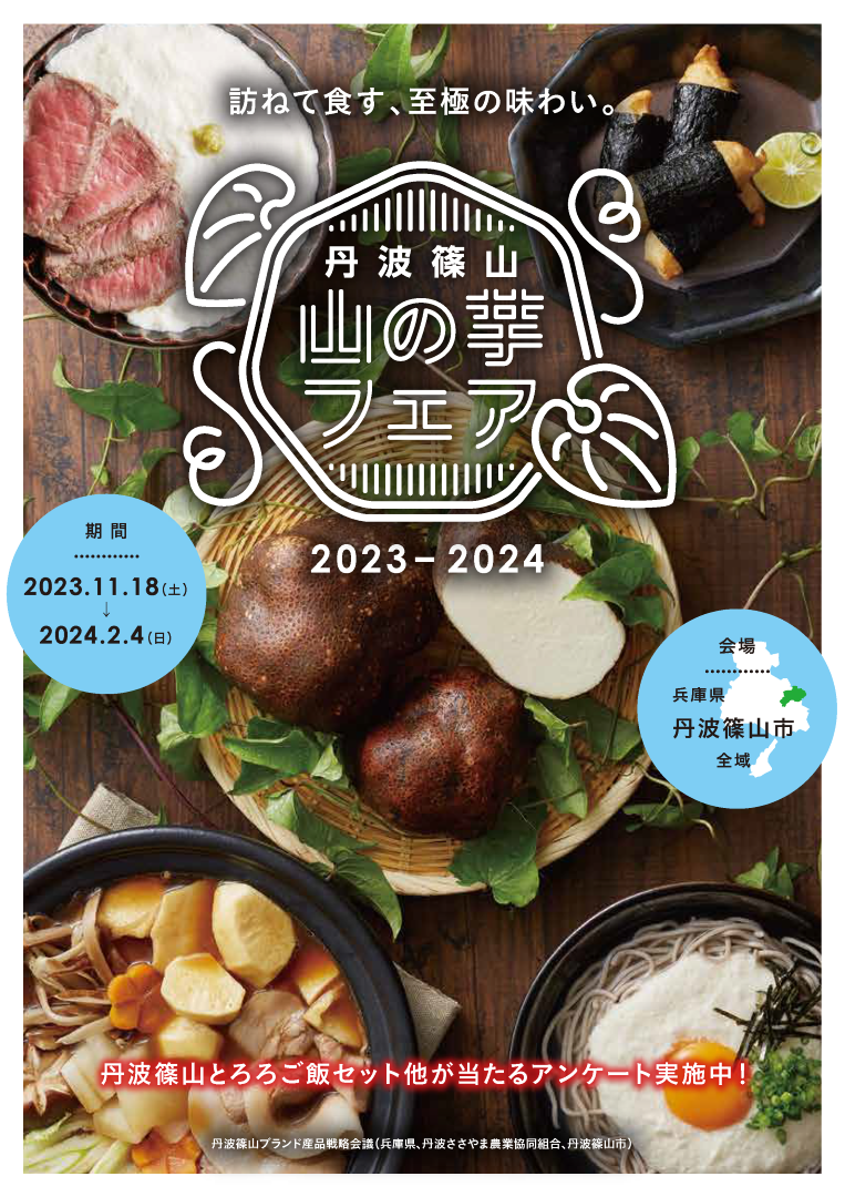 ◆丹波篠山 山の芋フェア:https://www.city.tambasasayama.lg.jp/soshikikarasagasu/nomiyakoseisakuka/tokusan/22576.html