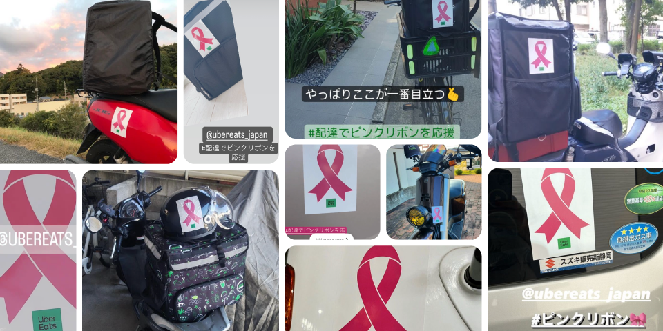 Uber Eats Japan 合同会社(以下、Uber Eats Japan)は、乳がんの啓発運動であるピンクリボン運動を支援するため、「配達パートナー ピンクリボンキャンペーン」を、ピンクリボン月間である 10 月に実施しました。