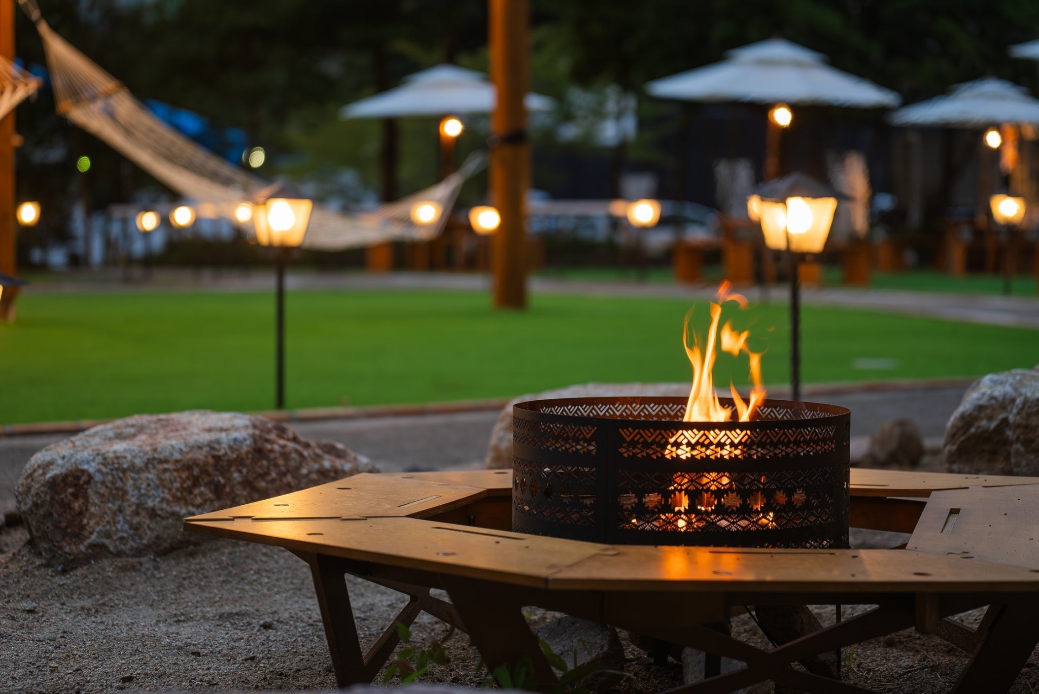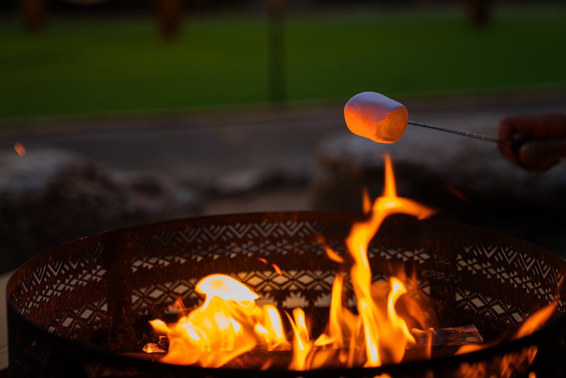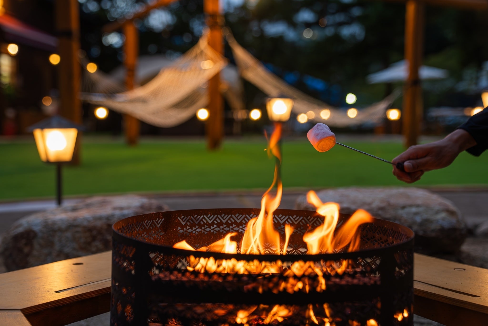 ハンモックでうたた寝をしたり、焚き火を眺めながら飲みものを飲んだり、マシュマロを焼くことができます。
